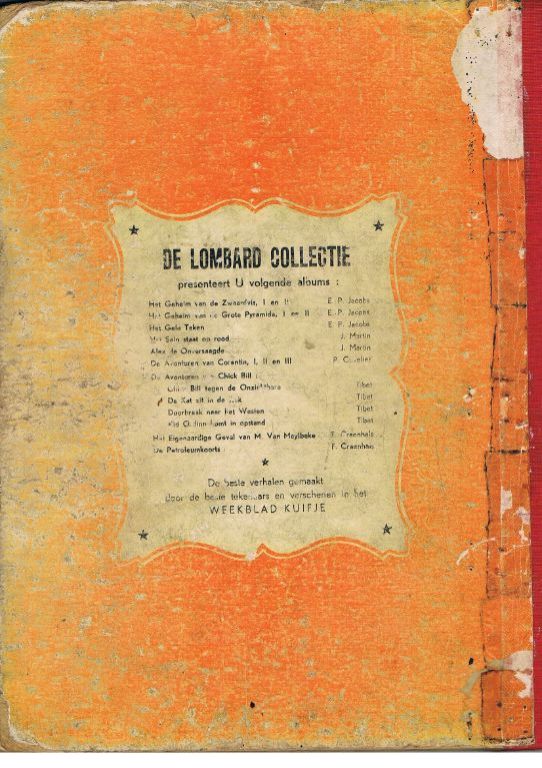 Uitg. Lombard. 1e druk 1956. HC. Pagina's afwisselend gekleurd en ongekleurd. Het boek is helaas in slechte staat. Het rechterdeel van de voorkaft is bijna niet toonbaar. De achterzijde is ook niet best. Hoeken en randen zijn beschadigd. Zowel in- als uitwendig is plakband te zien. Pagina 7-8 is vervangen door een ongekleurde fotokopie. Pagina's zijn hier en daar beduimeld en vervuild. Waarschijnlijk is het boek door honderden personen – op niet zorgvuldige wijze – gelezen. Kuifje Punt niet aanwezig. Positieve punten: alle pagina's zijn aanwezig; het is een mooi verhaal met schitterende tekeningen; het is een relatief zeldzaam album. De cataloguswaarde in nieuwstaat ligt op € 400,00. Ik vraag slechts € 25,00. Gewicht 466 gram. Verzendkosten vanaf € 3,95.
