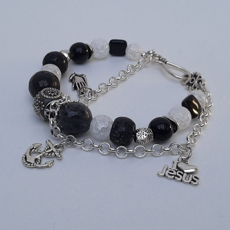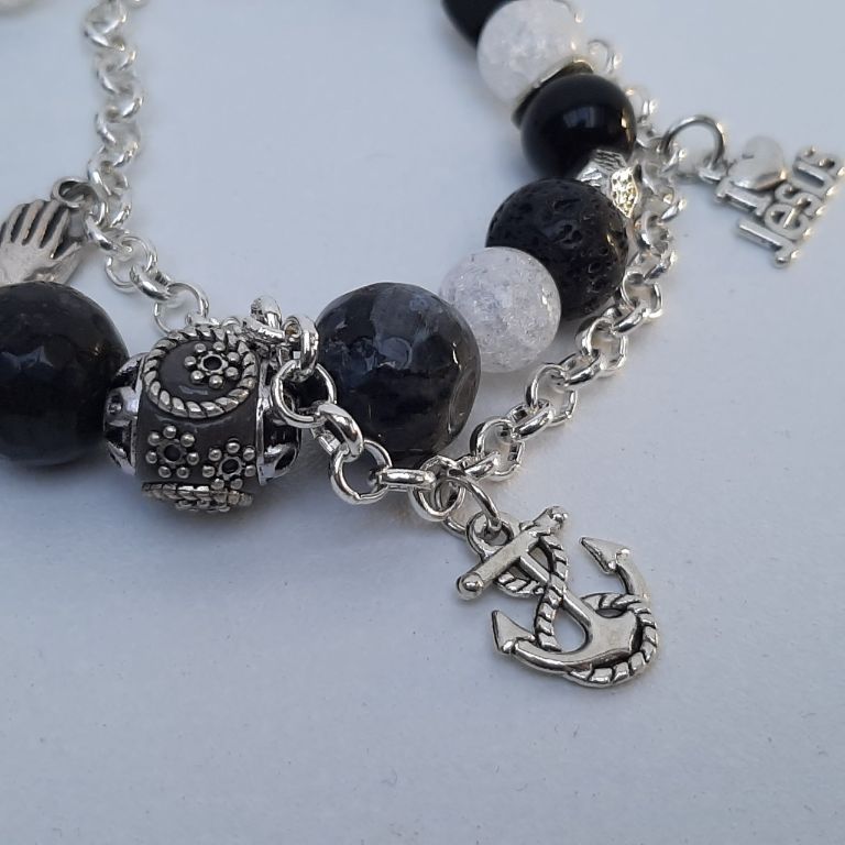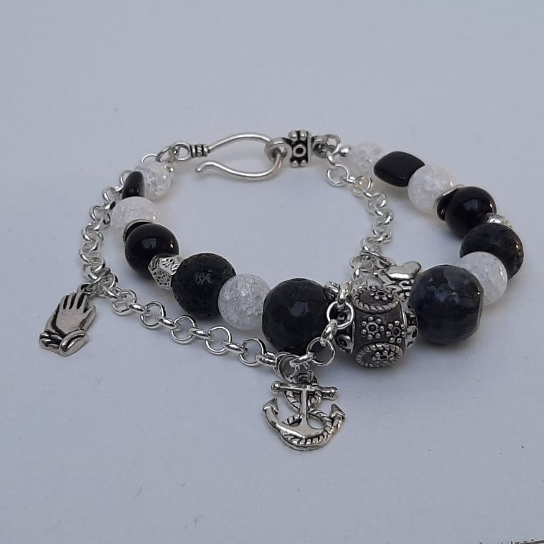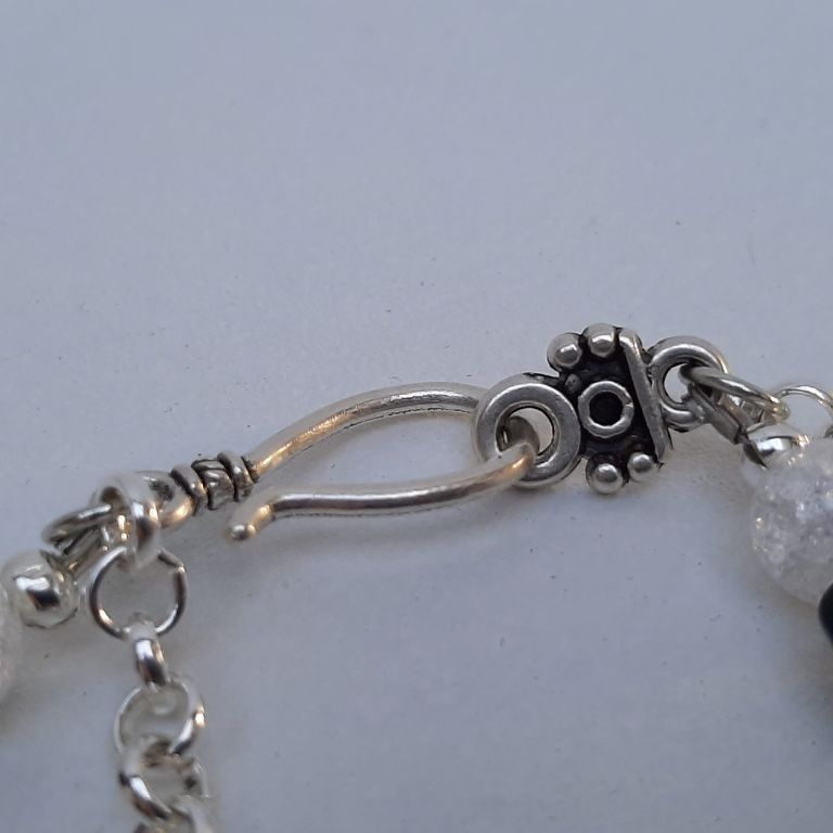 CORINA SIERADEN Armband van powershell (split en onregelmatig), geregen op elastiek. Polsmaat: 18 cm. Past bij elke outfit!