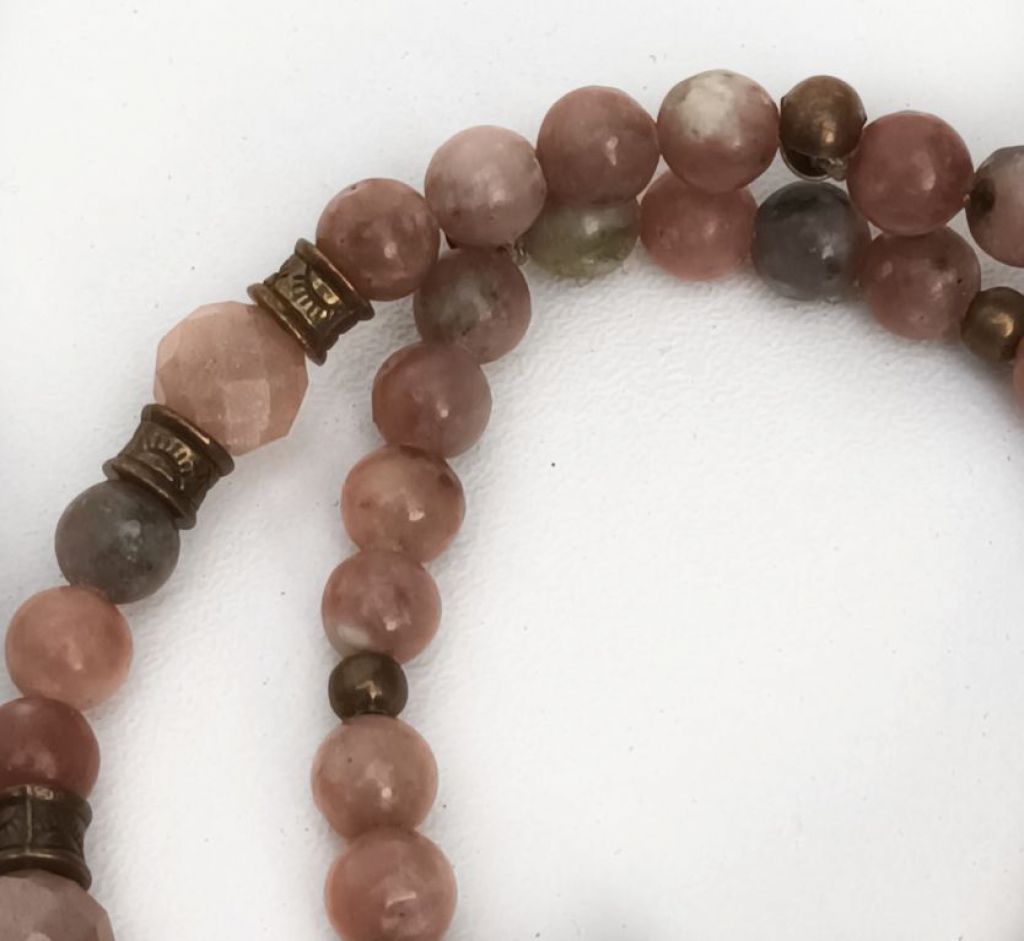 CORINA SIERADEN CADEAUTIP Armbandenset (2-delig) van ovale luim jaspis, ocean jaspis nuggets en goudkleurige spacers, geregen op elastiek. Polsmaat: 18 cm.