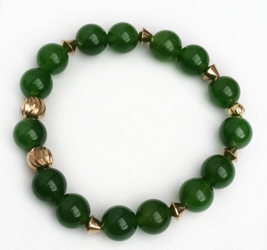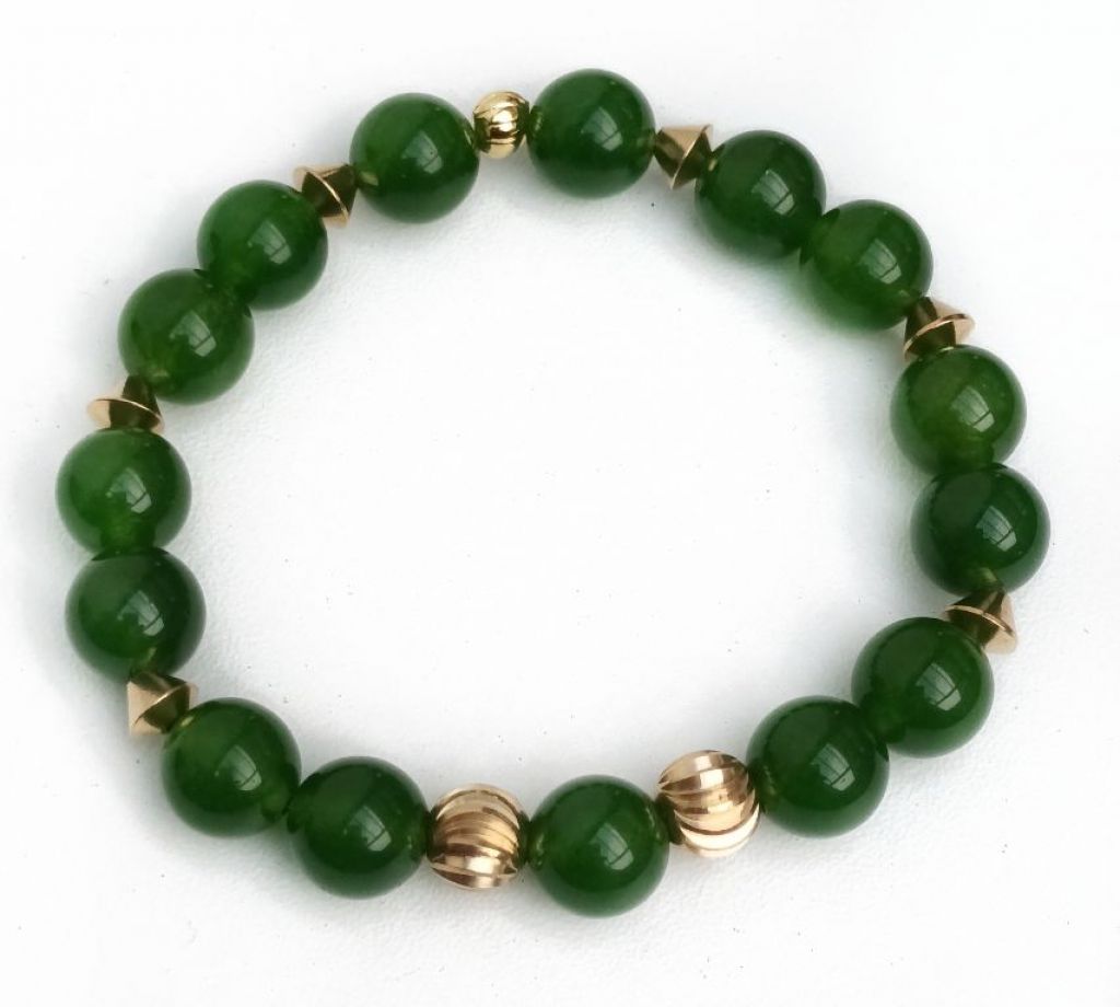 CORINA SIERADEN Armband van aventurijn (ovaal, 8 mm mat en facetgeslepen, buggle beads), maansteen (8 en 10 mm) en hematiet. Polsmaat: 19 cm.