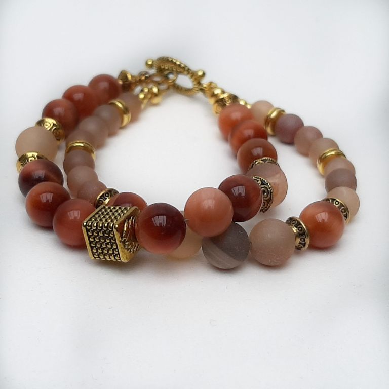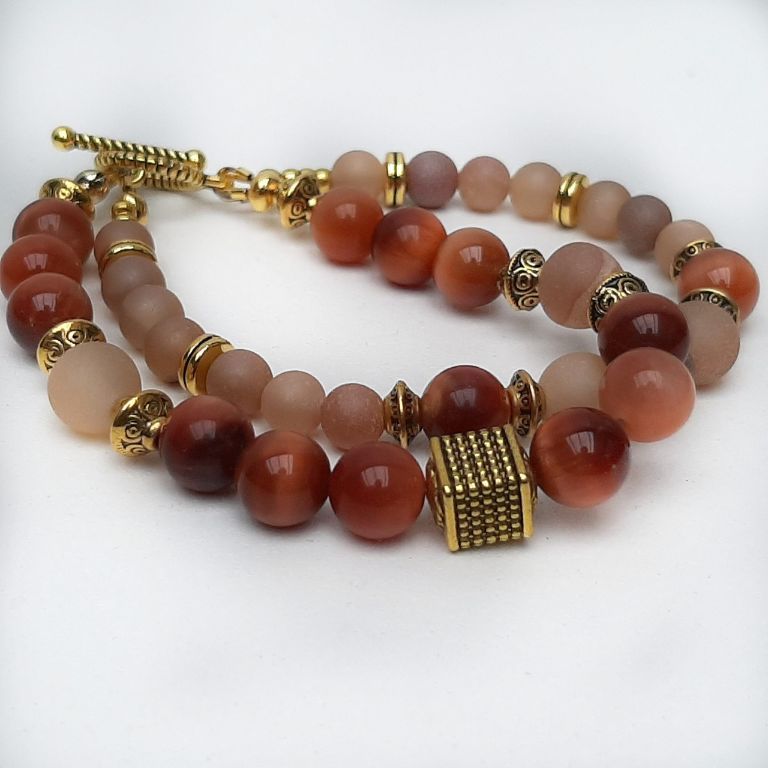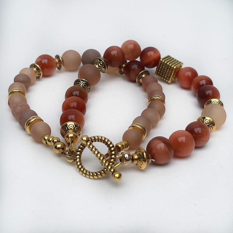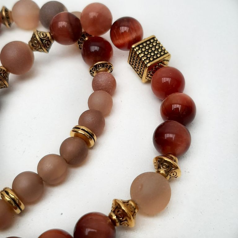 CORINA SIERADEN Armband van onregelmatige bronziet en messing tussenkralen. De warme, aardse tinten van bronziet worden stijlvol gecombineerd met de glans van messing. Polsmaat: 18-19 cm.