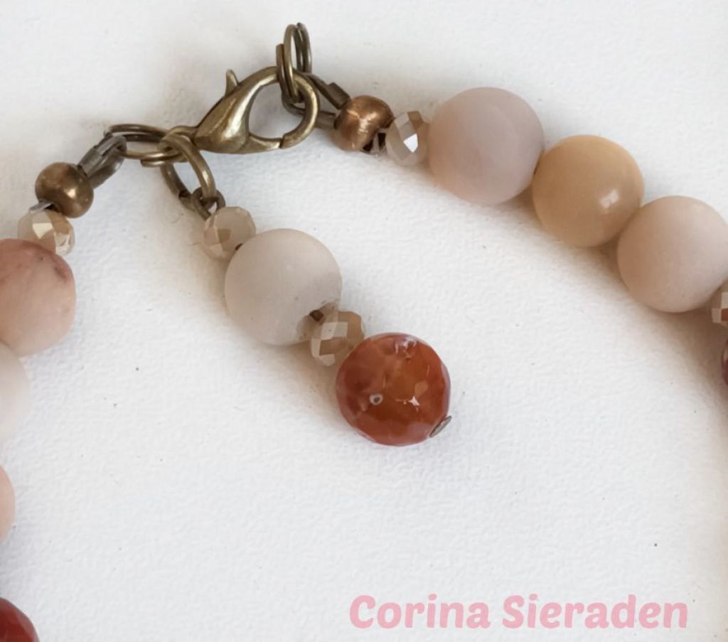 CORINA SIERADEN AANBIEDING Memory wire armband van morganiet, frosted tiger eye, goudkleurige spacers en bedeltjes. Maat: één maat. Prijs: VAN €13,95 VOOR €11,00 Kijk voor meer mooie aanbiedingen ...