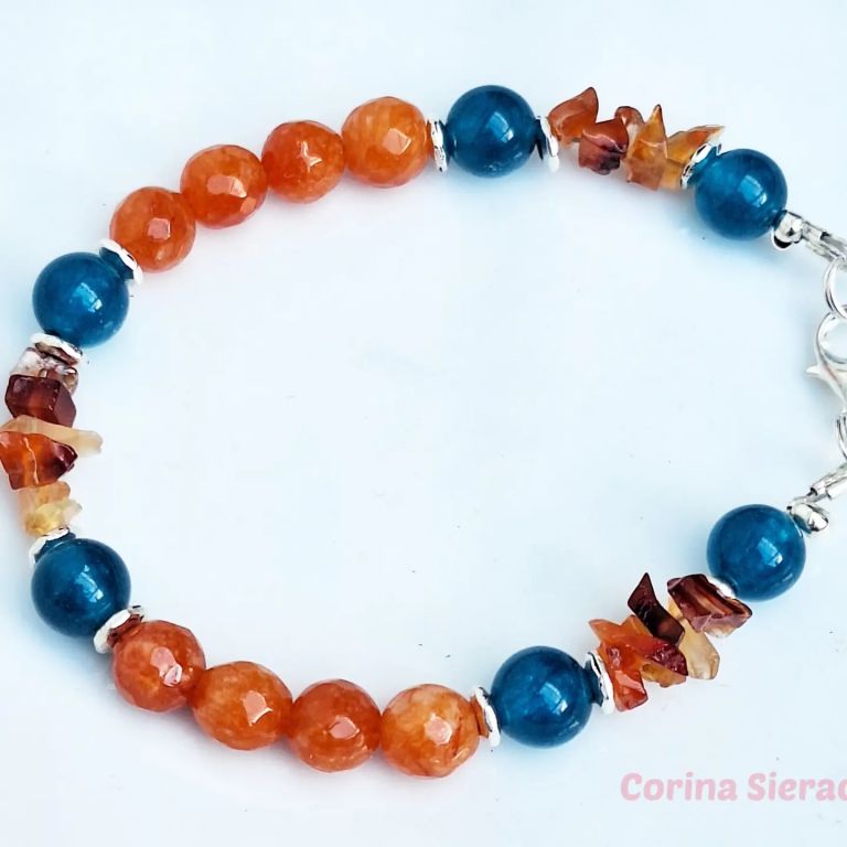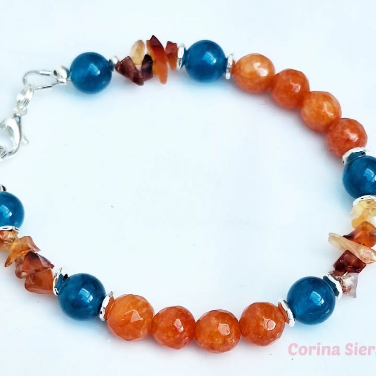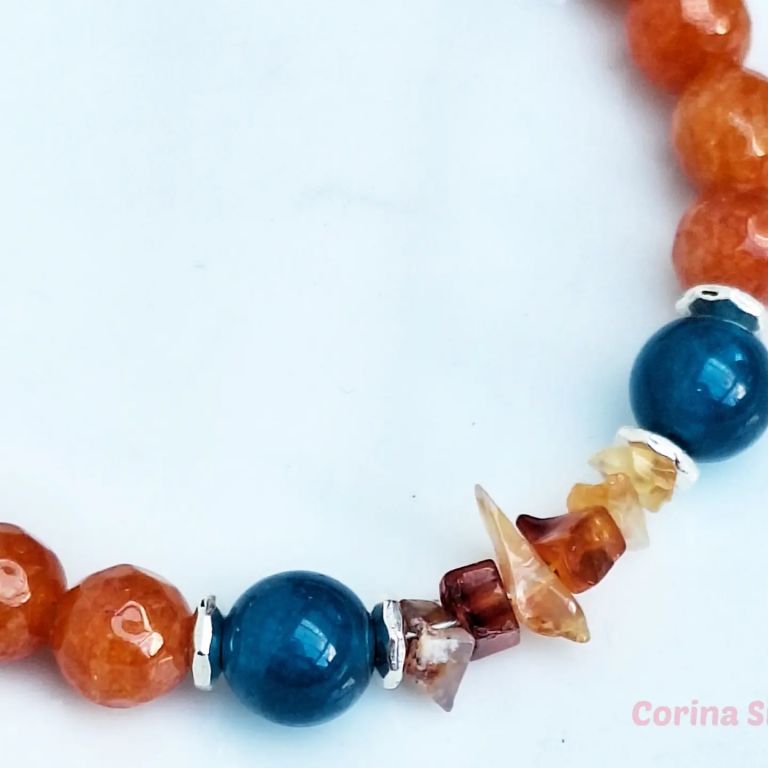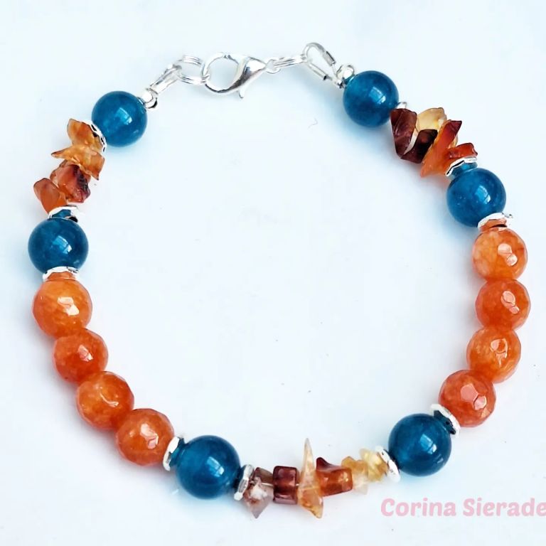 CORINA SIERADEN Luxe armband van blue apatiet en verzilverde hematiet met verzilverd sierslotje. Handgemaakt en elegant. Polsmaat: 18 cm.