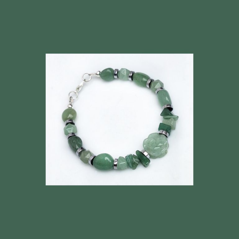 Stijlvolle armband van agaat (6 mm mat), labradoriet (6 mm facetgeslepen) en zilverkleurige spacers, met bedel ster.