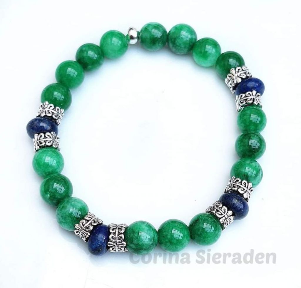 CORINA SIERADEN Shop jij ook alvast voor de feestdagen? Bij Corina Sieraden ben je op de juiste plaats! Armband van persian jade (10 mm), tibetaans zilver en bedel, geregen op elastiek. Polsmaat: 18,5 cm. U kunt mij volgen ...