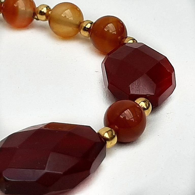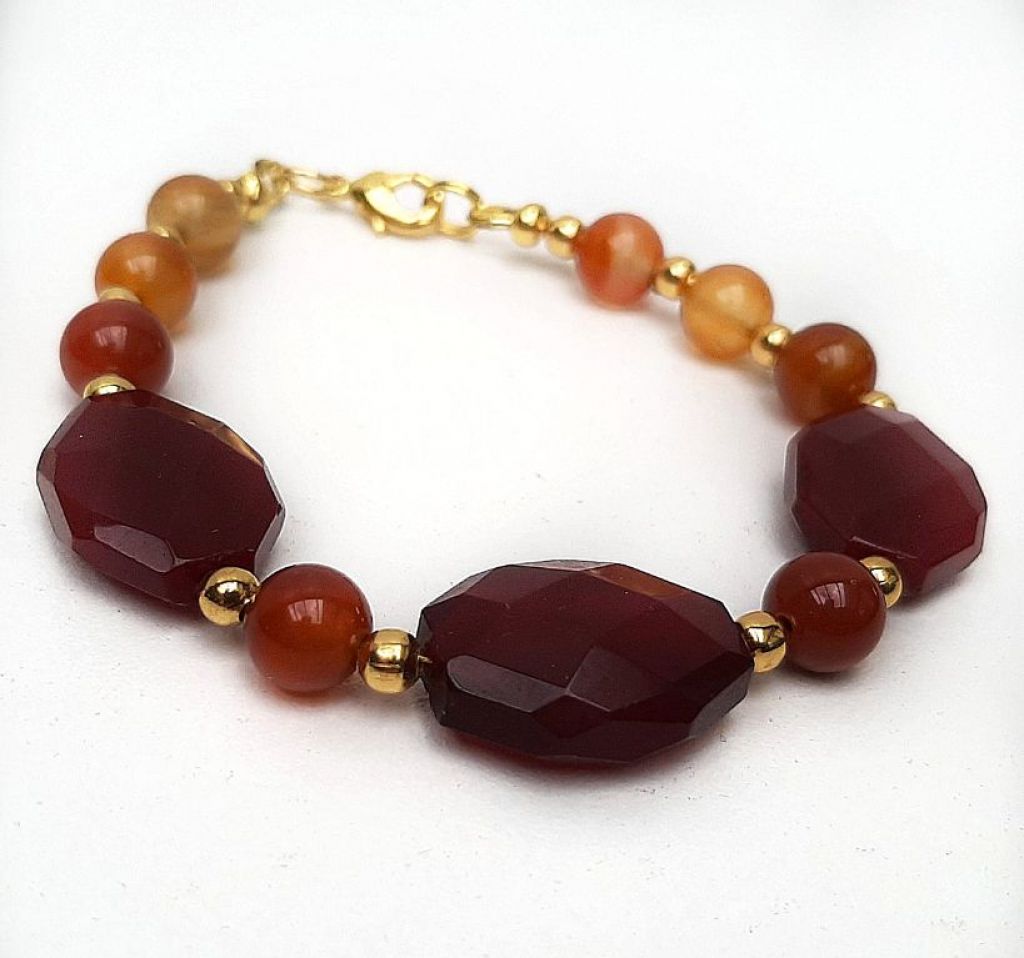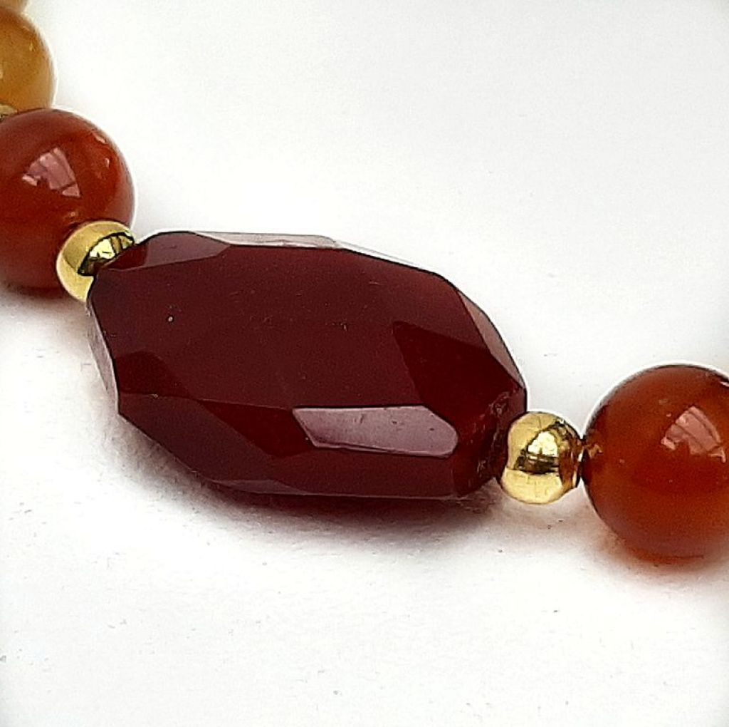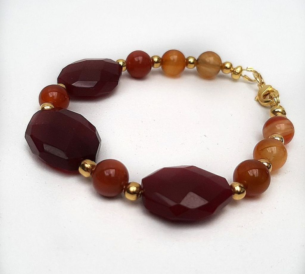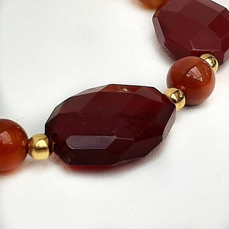 Armband van wijnagaat (rond en facetgeslepen) en vergulde spacerkralen.