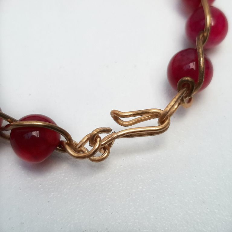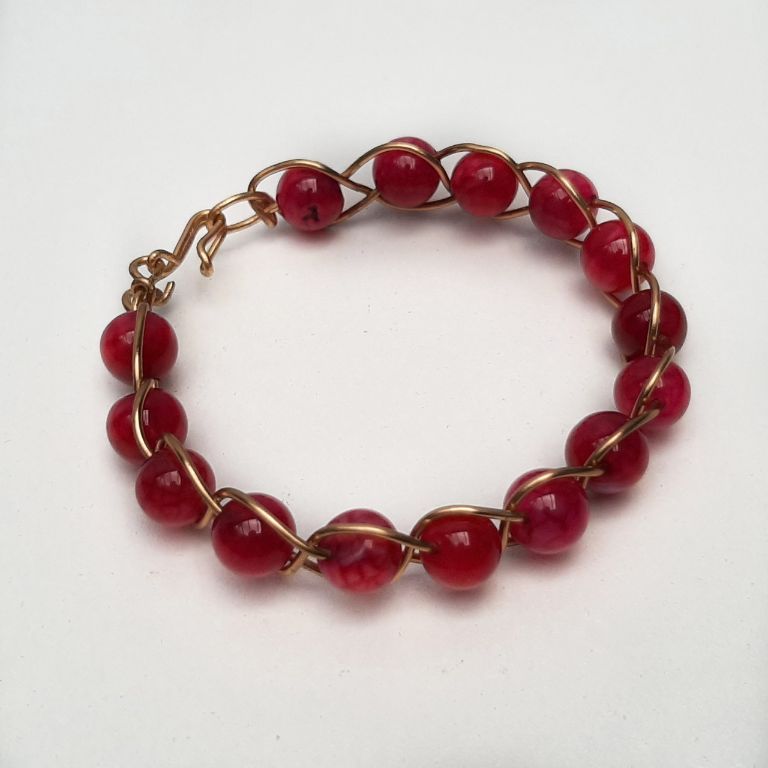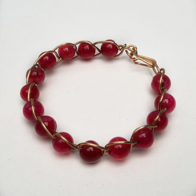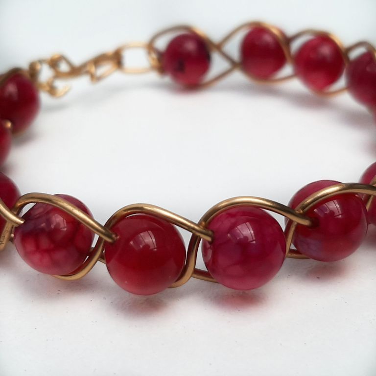 Wire wrapped armband van rode agaat, gewikkeld in messing draad.