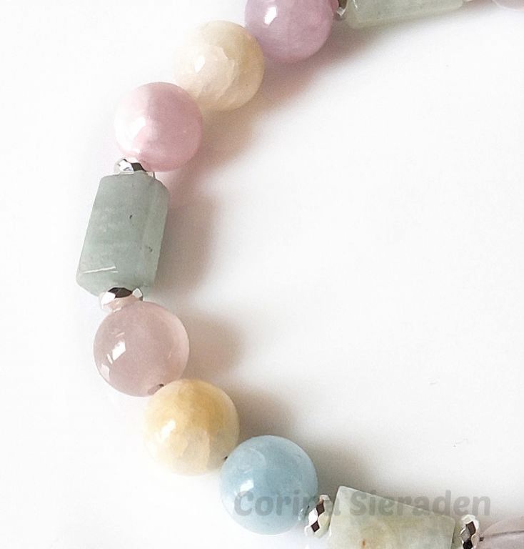 CORINA SIERADEN Herenarmband van facetgeslepen agaat, chalcedoon en tibetaans zilver, geregen op elastiek. Polsmaat: 21,5 cm.U kunt mij volgen op Facebook corinasieraden en Instagram corinavandam