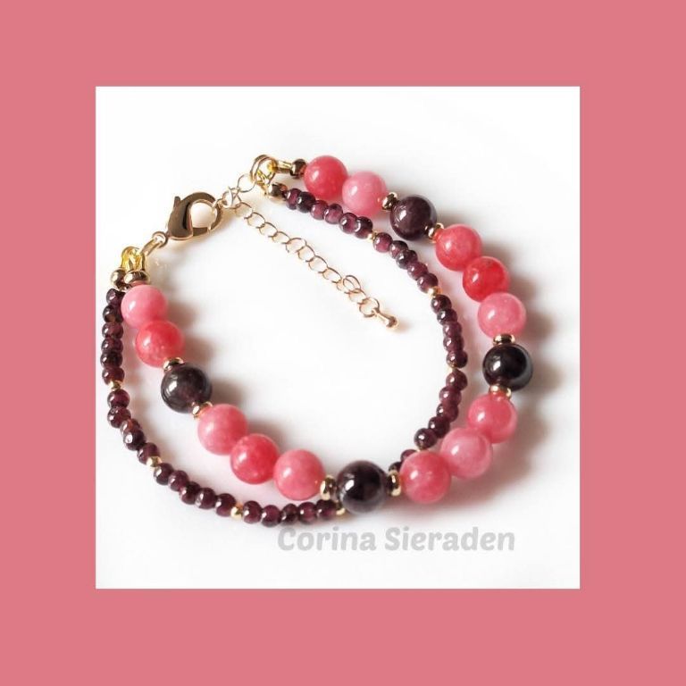 CORINA SIERADEN Ben jij ook ze 'weg' van granaat? Dan is dit vast iets voor jou: Armband van granaat (facetgeslepen kubus 8×8 mm, facetgeslepen rond 10 mm en onregelmatige kralen) en messing, met uniek, verguld ...