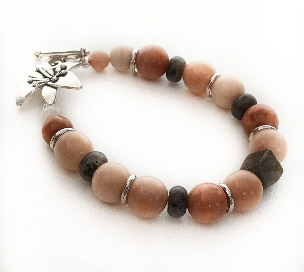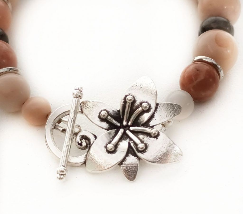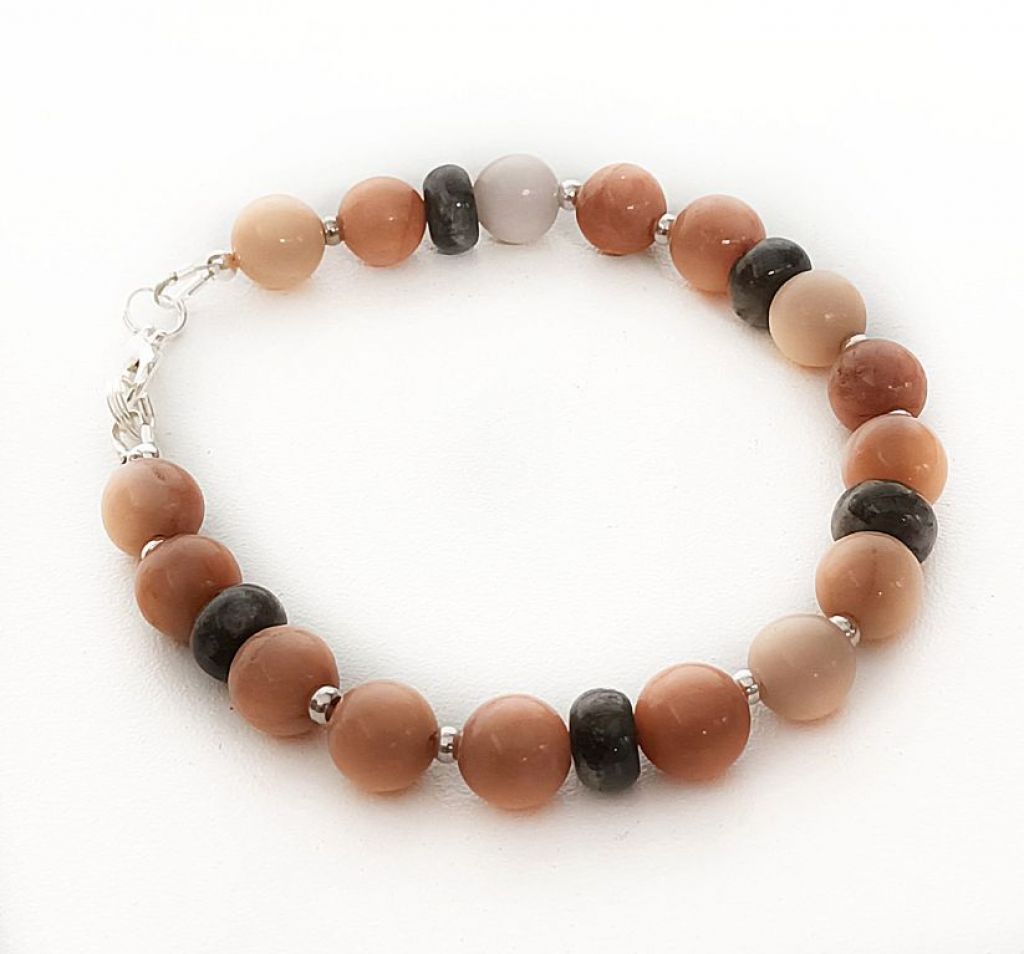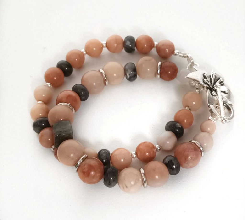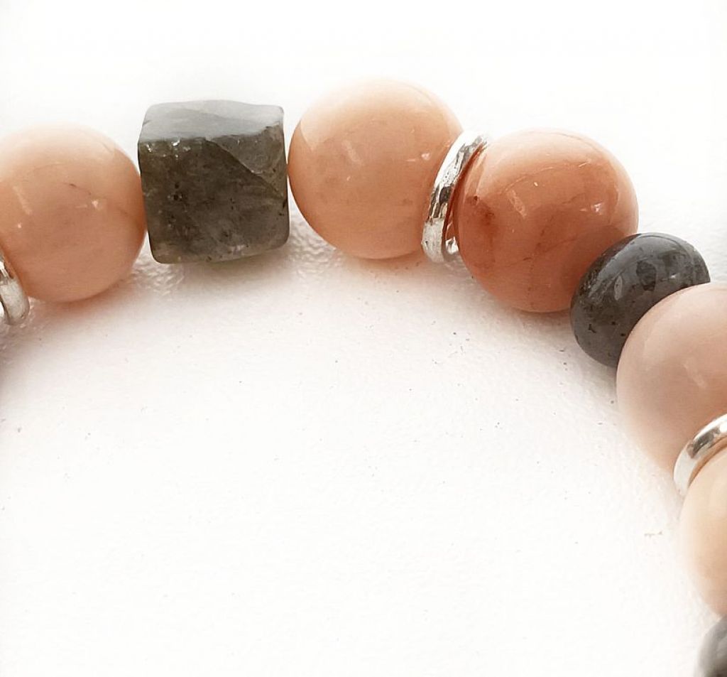 Prachtige armbandenset (2-delig) van pink aventurijn, labradoriet (blok en rondel) en RVS (nikkelvrij).
