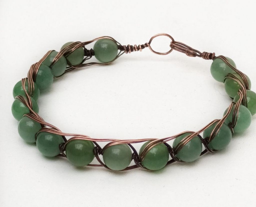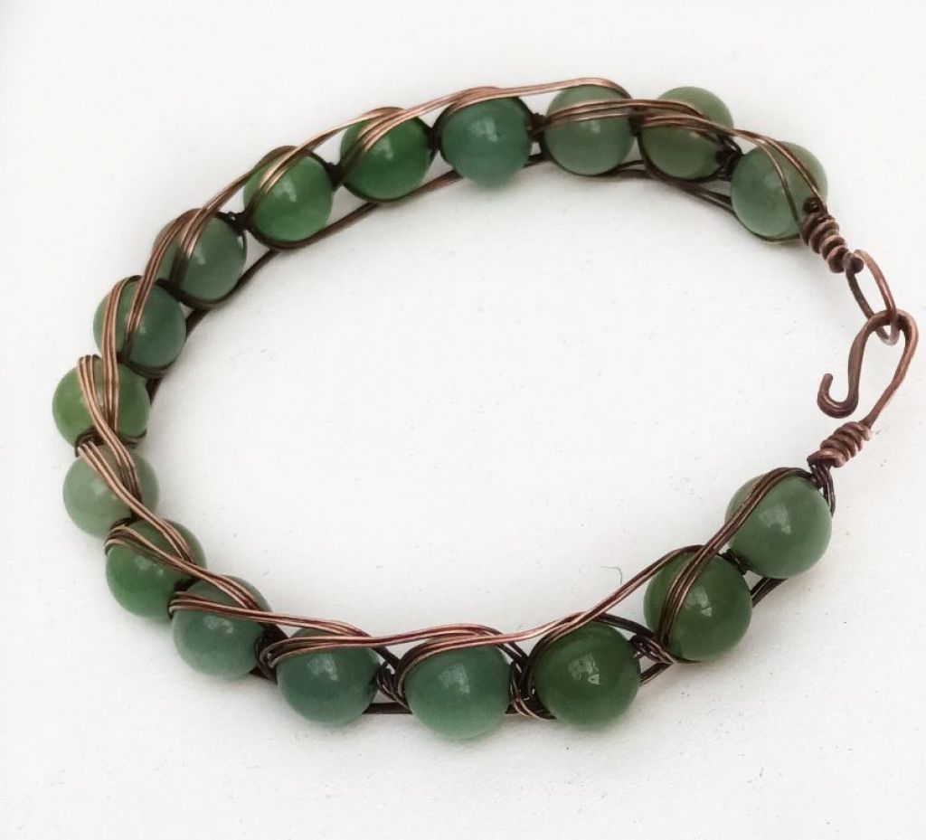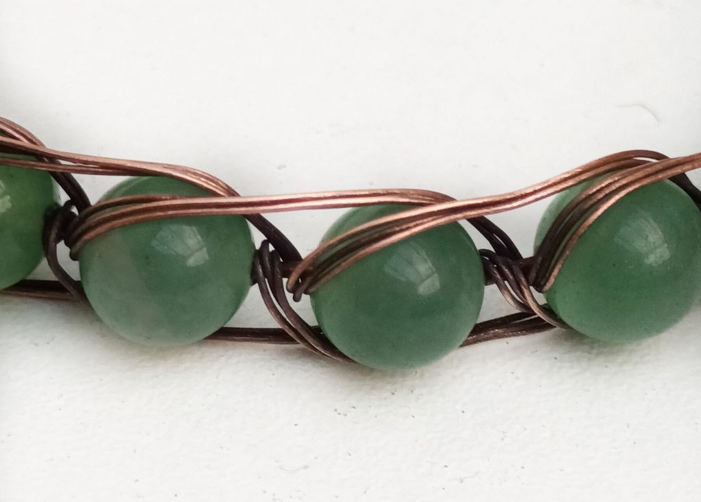 Deze wire wrapped armband van aventurijn in geoxideerd koper is nu afgeprijsd.