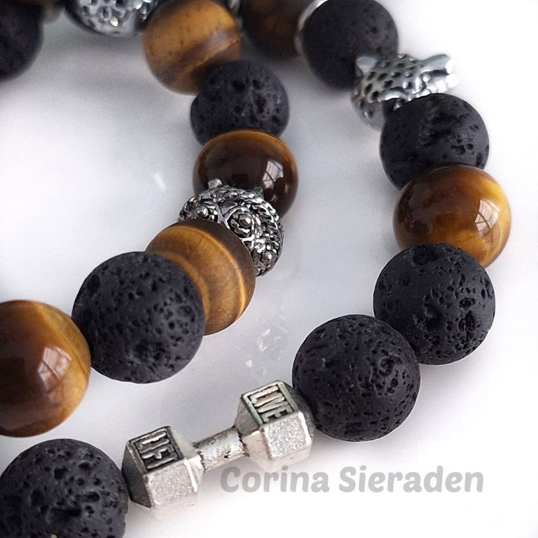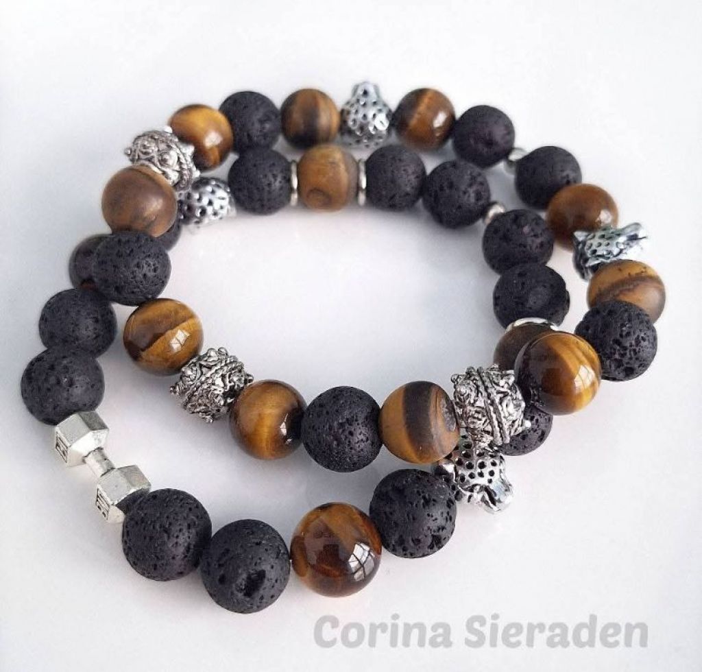 Ook voor heren vind je bij Corina Sieraden unieke, handgemaakte armbanden zoals deze prachtige set: