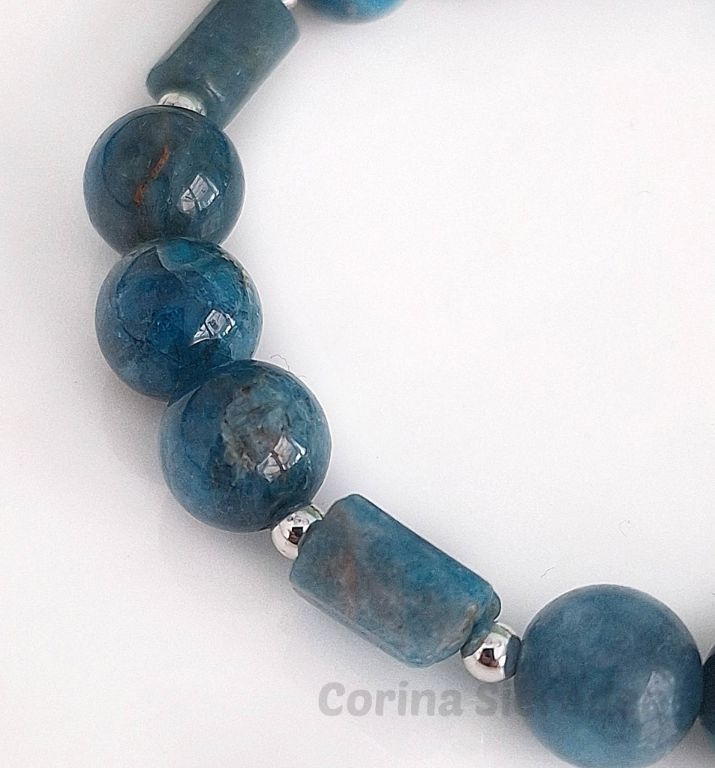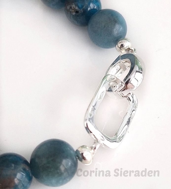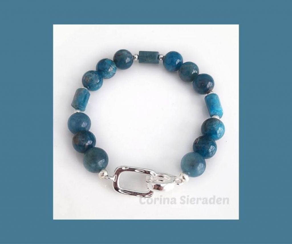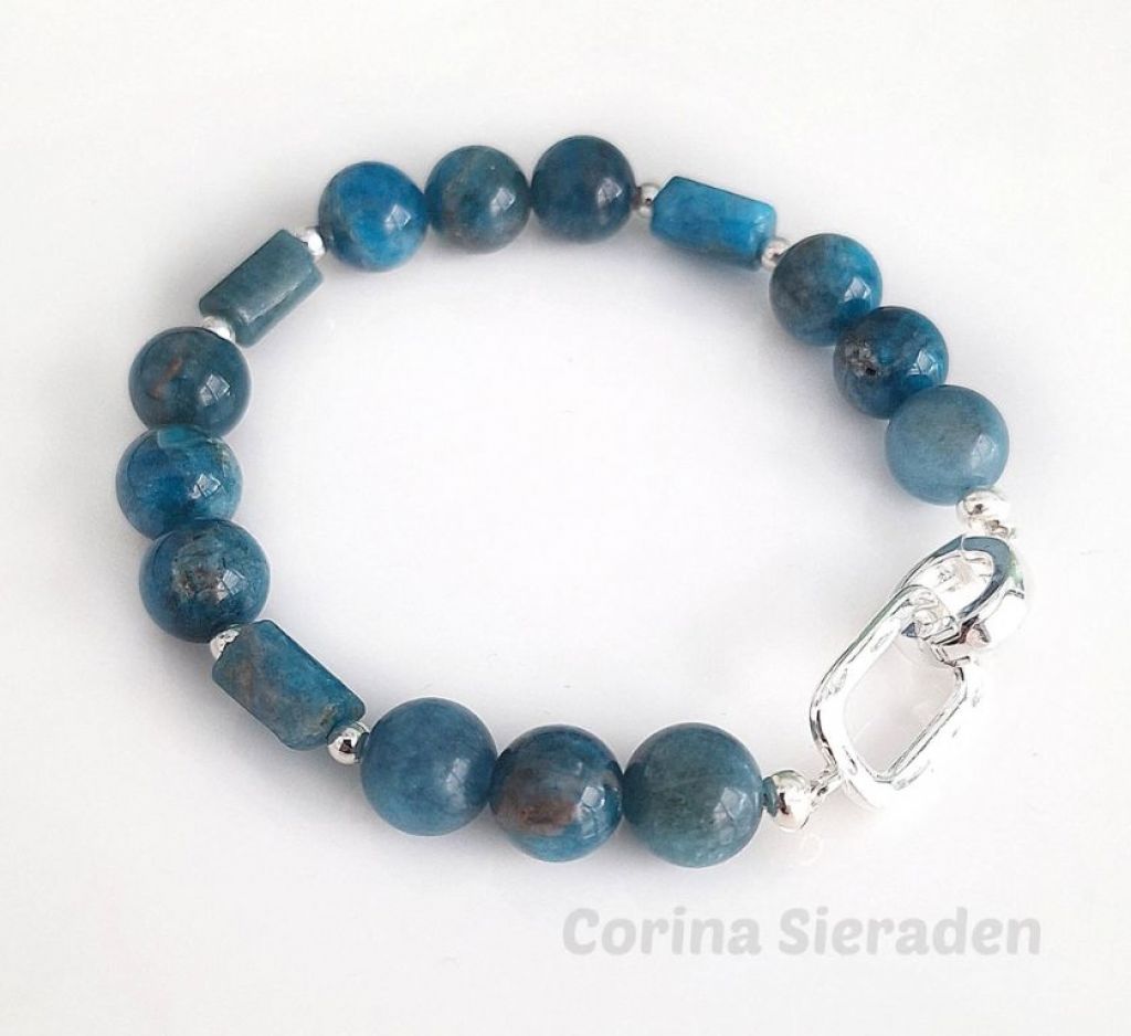 Luxe armband van blue apatiet en verzilverde hematiet met verzilverd sierslotje. Handgemaakt en elegant.