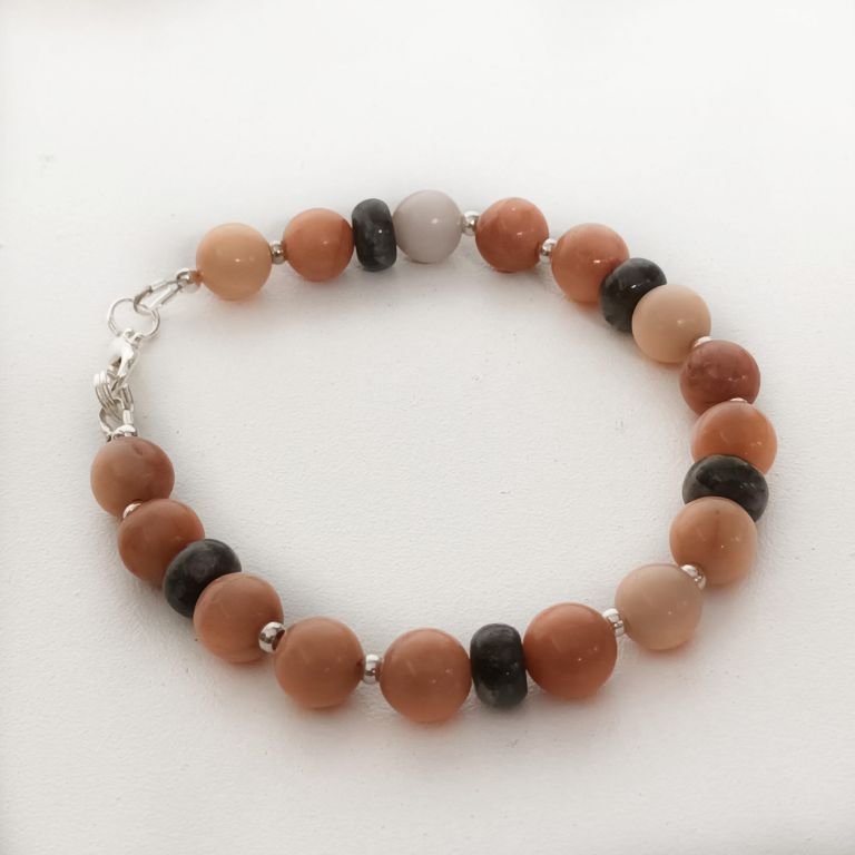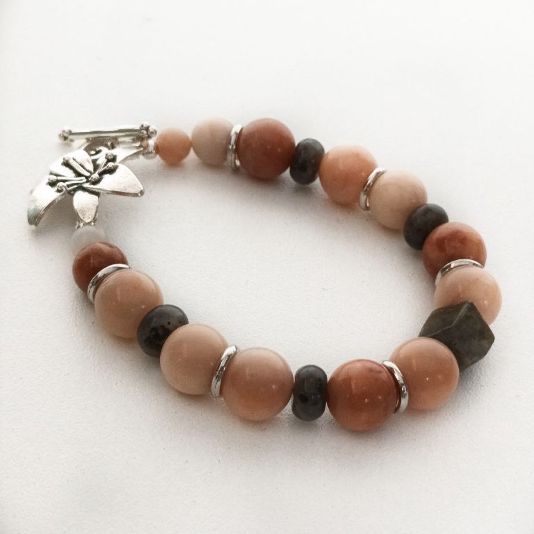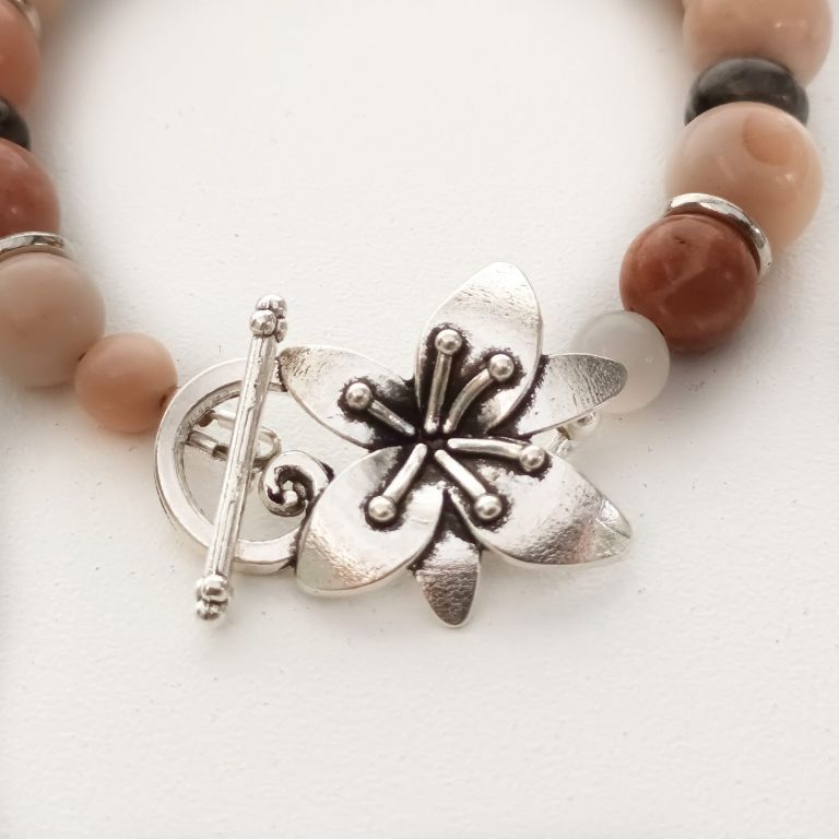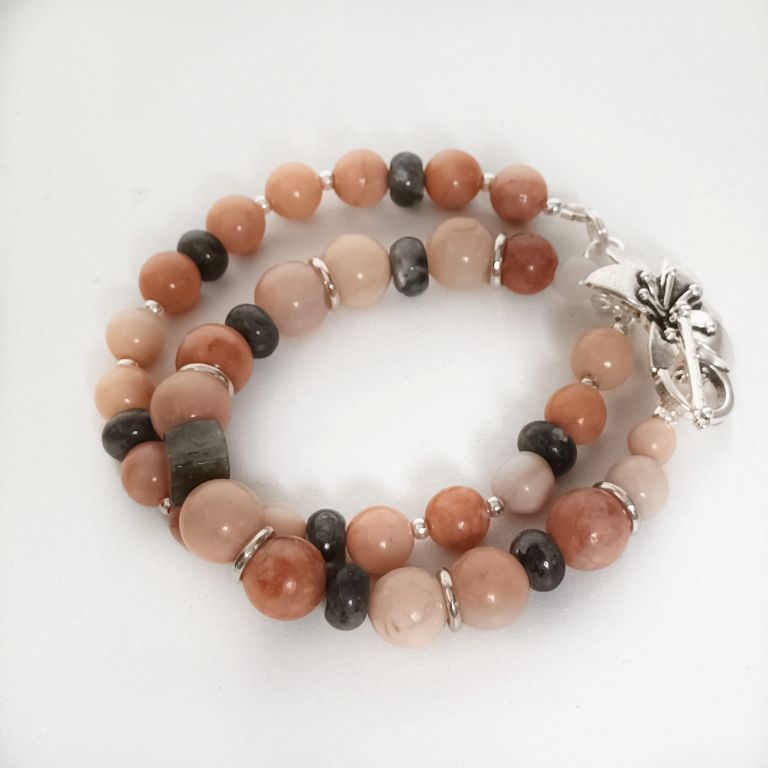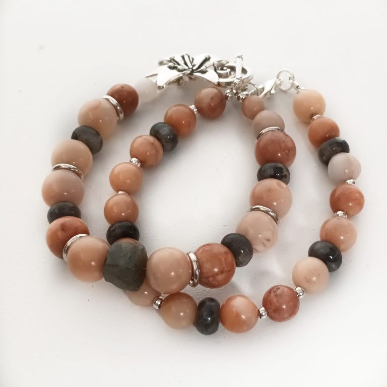 Armbandenset (2-delig) van pink aventurijn, labradoriet en zilverkleurige spacers. Eén armband heeft een prachtig kapittelsot, de andere armband heeft een gewoon slot. Kan als set, maar ook apart gedragen worden.