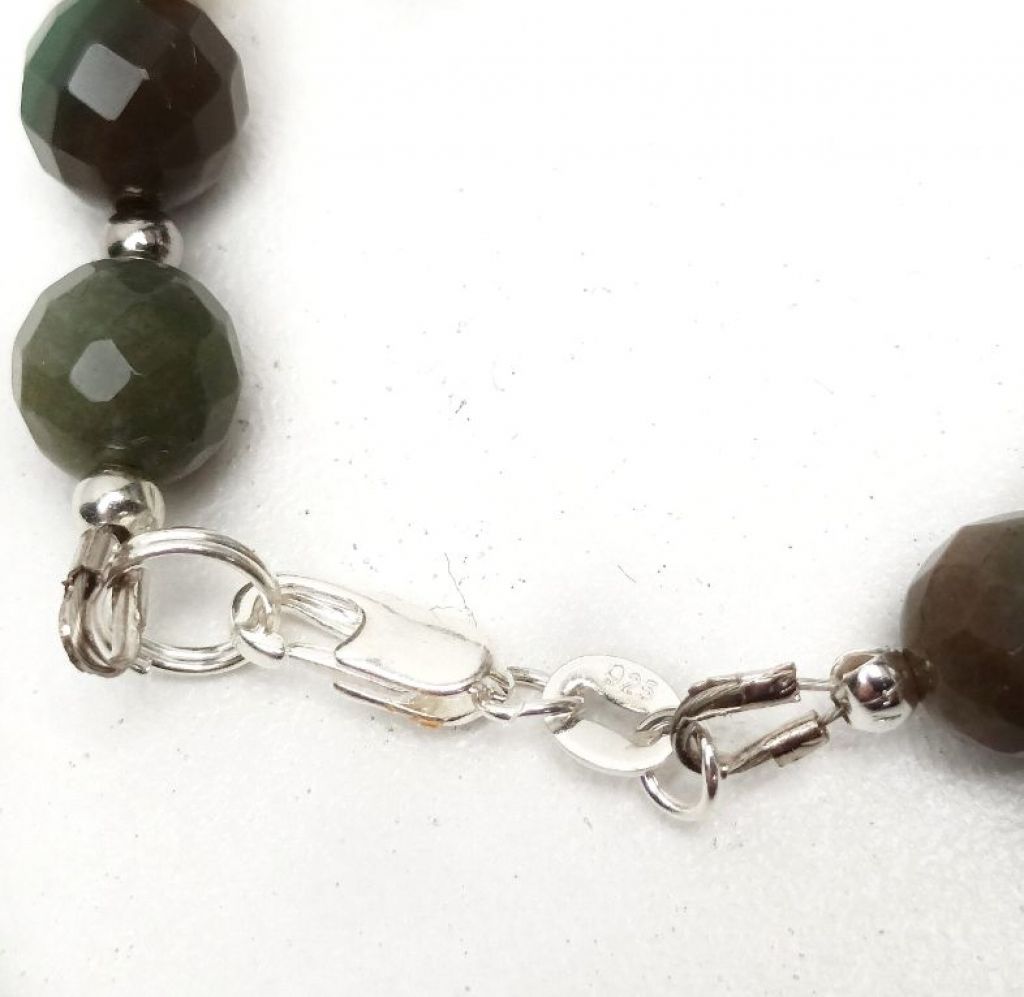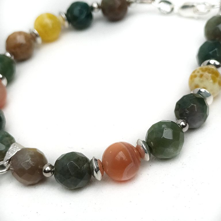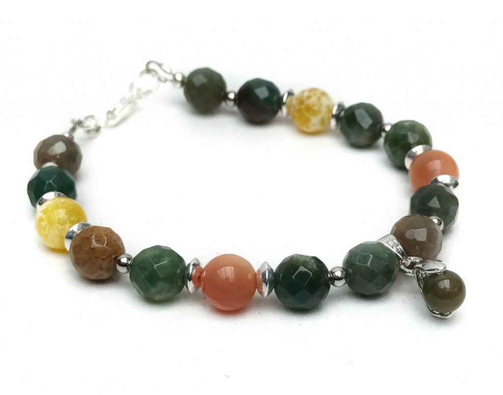 Prachtige, handgemaakte armband van facetgeslepen luim jaspis, fire agaat, red wine agaat en STERLING ZILVER, met bedelhanger.