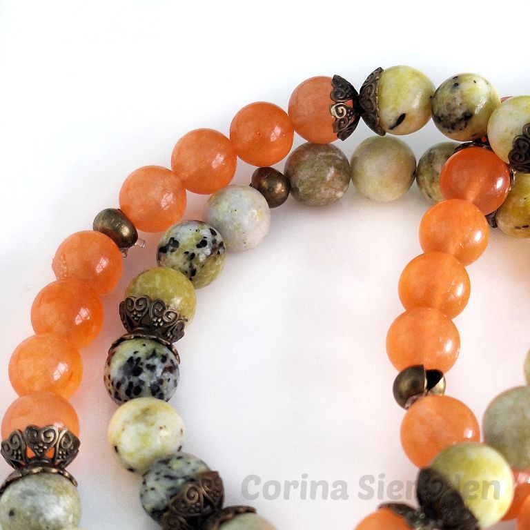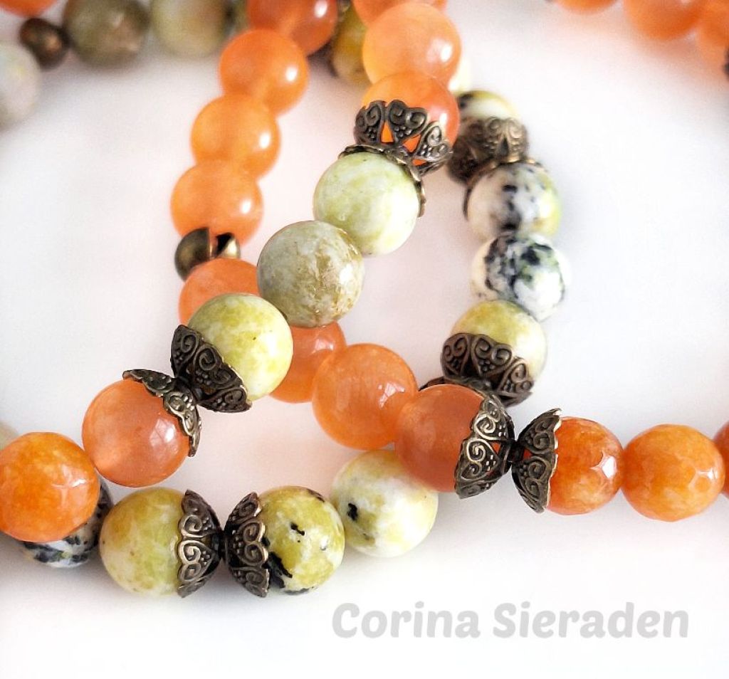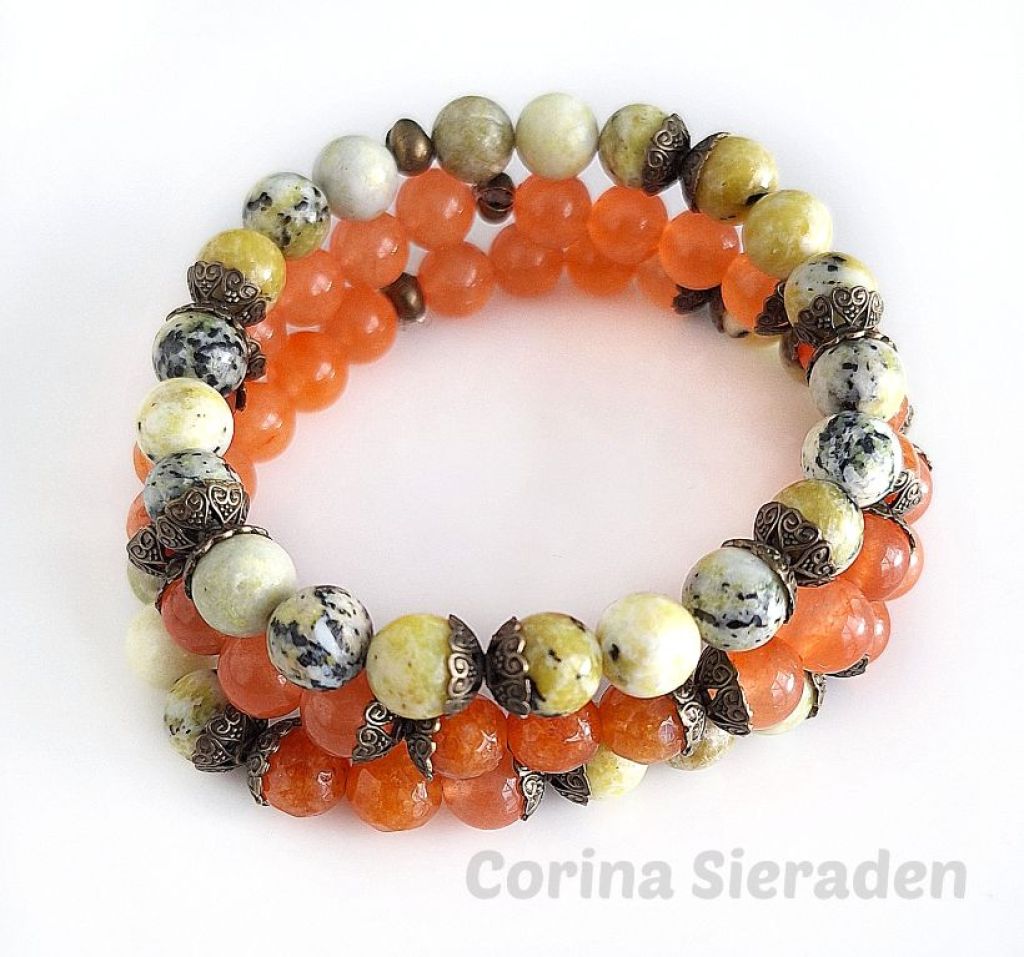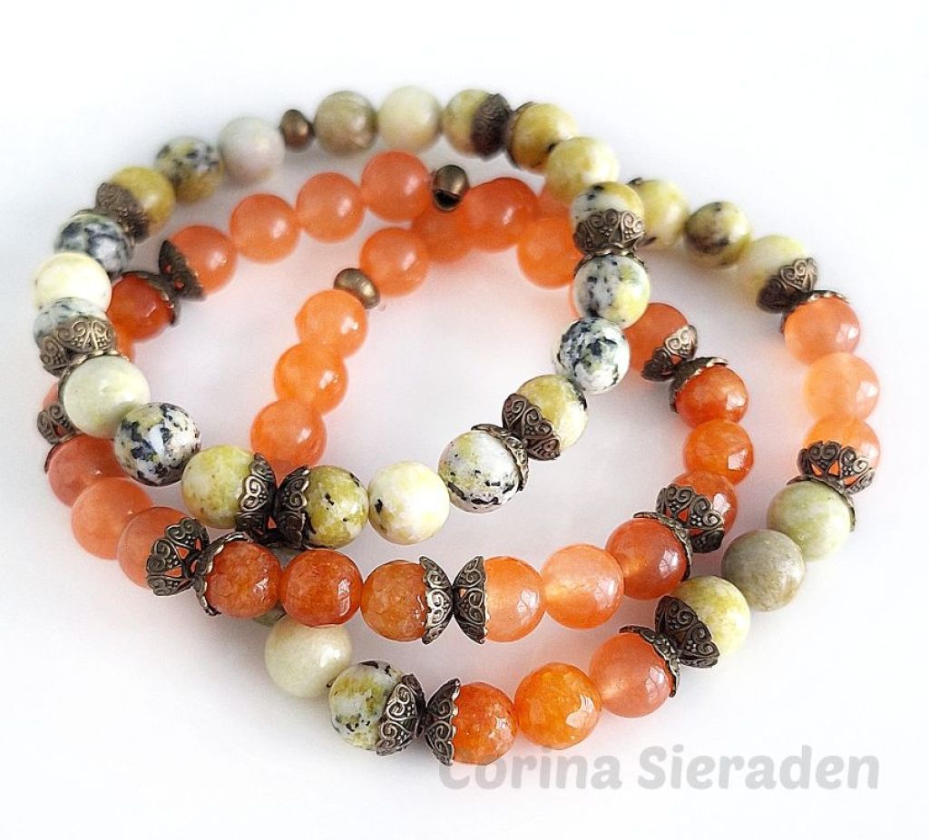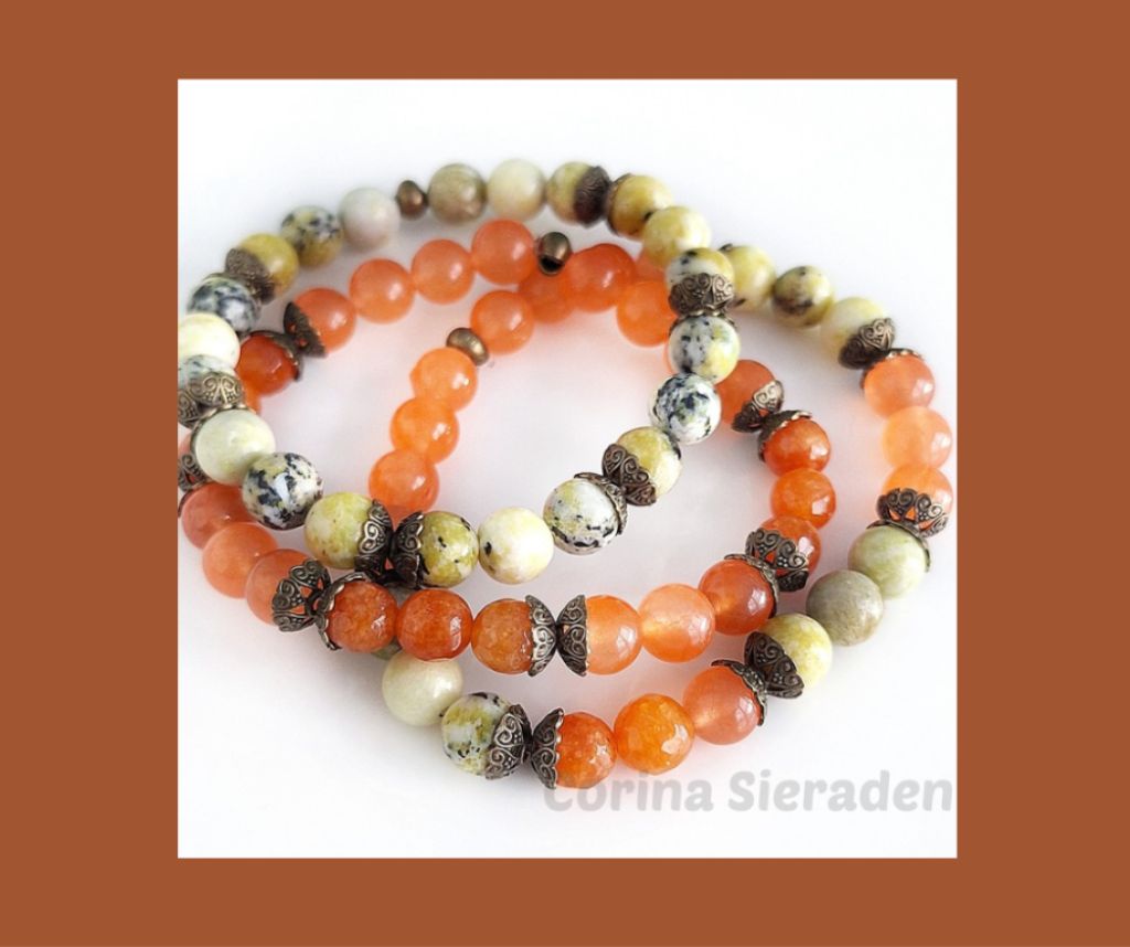 Deze armbandenset van chalcedoon en lemon jaspis, afgewerkt met bronzen accenten, geeft je outfit direct een natuurlijke en stijlvolle uitstraling. Draag ze samen of mix & match!