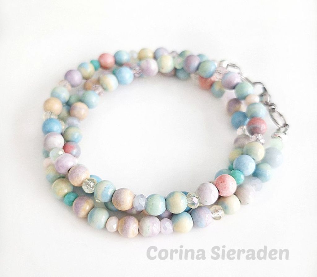 Deze wikkelarmband van Mongoolse agaat en kristallen facetkraaltjes geeft jouw look nét dat beetje extra.