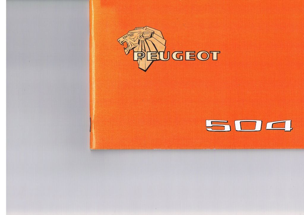 Peugeot 504. Achterop staat een aanduiding 09.77, waaruit ik opmaak, dat het kennelijk gaat om een druk uit 1977. Binnenin staan de aanduidingen A11, A12, A13, A14, F11, F13, D11 en D13.