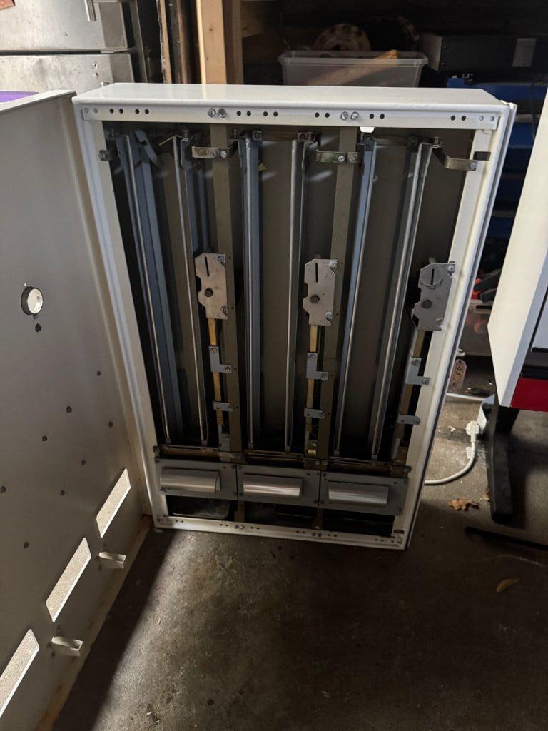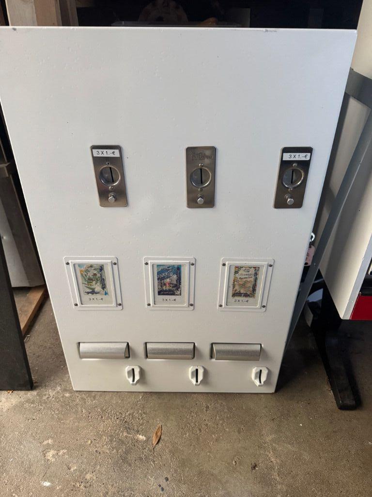 Prachtige oude condoomautomaat met 3 lades. De automaat is in goede staat en compleet met binnenwerk en sleutel. Gemaakt van zware kwaliteit materialen. Afmetingen: 83 cm hoog, 53 cm breed en 16 cm diep. Wordt geleverd met ophangbeugel.