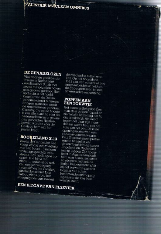 Inhoud: De genadelozen, Booreiland X-13, Poppen aan een touwtje. Uitg. Elsevier. Tweede druk 1977. Gekartonneerd met stofomslag. Deze laatste heeft een paar scheurtjes opgelopen. 800 pagina's. Tussen het 1e en 2e titelblad gaat langzamerhand een spleetje komen. Verder ziet het boek er zeer goed uit. Dikte 6 cm. Gewicht 974 gram. Verzendkosten vanaf € 4,50. Prijs € 7,95.