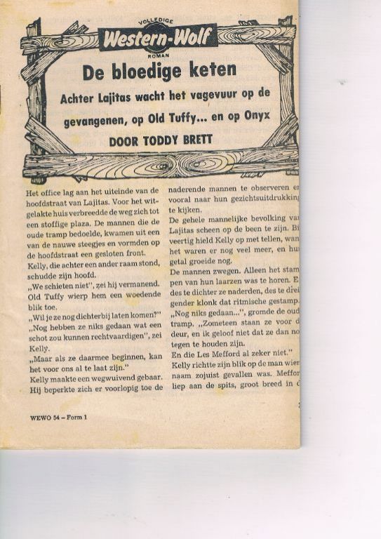 Door Toddy Brett. Kaften ontbreken. Waarschijnlijk uit een omnibus gevallen. Aan de zijkant kort afgesneden. Geniet boekje. Door het ontbreken van de kaften nu 64 pagina's. Zeer lichte gebruikssporen. Gewicht 50 gram. Verzendkosten: In de oranje brievenbus voor € 2,88. Met track & trace € 3,95. Combineren is handig. Prijs € –,75.