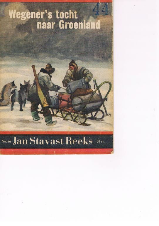 Wegener's tocht naar Groenland. Uitg. van Ditmar. Ca. 1943/1944. Wegens papierschaarste overgestapt naar 16 pagina's. Leesboekje met enkele illustraties. Vrij lichte gebruikssporen. Gewicht 26 gram. Redelijk zeldzaam. Prijs € 9,90. Verzendkosten vanaf € 1,74.