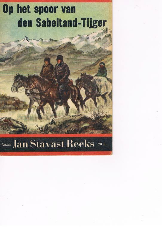 Op het spoor van den Sabeltand-Tijger. Uitg. van Ditmar. Ca. 1943/1944. 16 pagina's. Leesboekje met enkele illustraties. Vrij lichte gebruikssporen. Gewicht 26 gram. Redelijk zeldzaam.