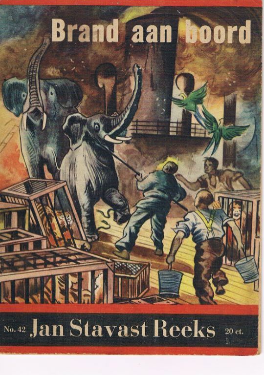 Brand aan boord. Uitg. van Ditmar. Ca. 1943/1944. 16 pagina's. Leesboekje met enkele illustraties. Vrij lichte gebruikssporen. Gewicht 26 gram. Redelijk zeldzaam.