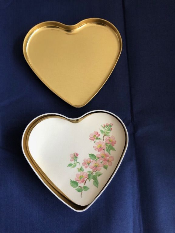 Hartvormig wit blik met bloem motief.
