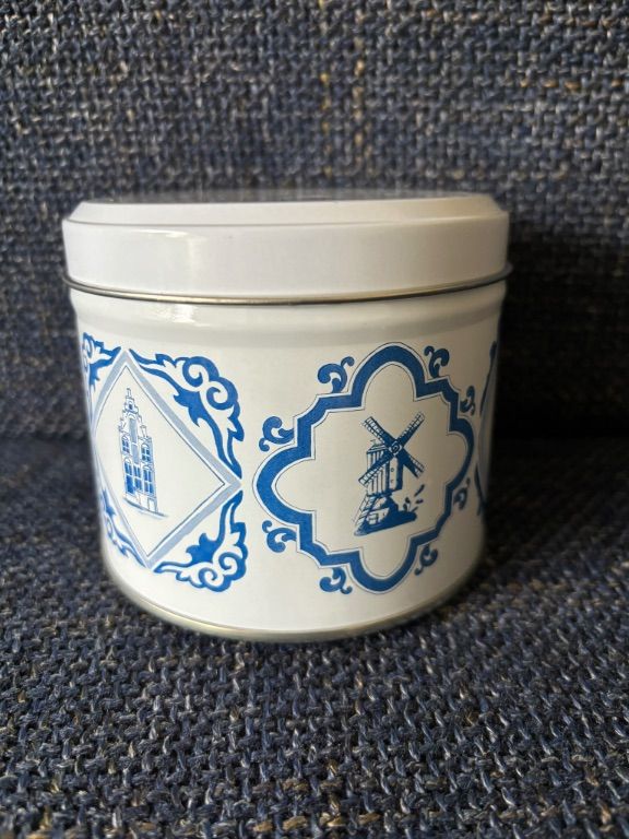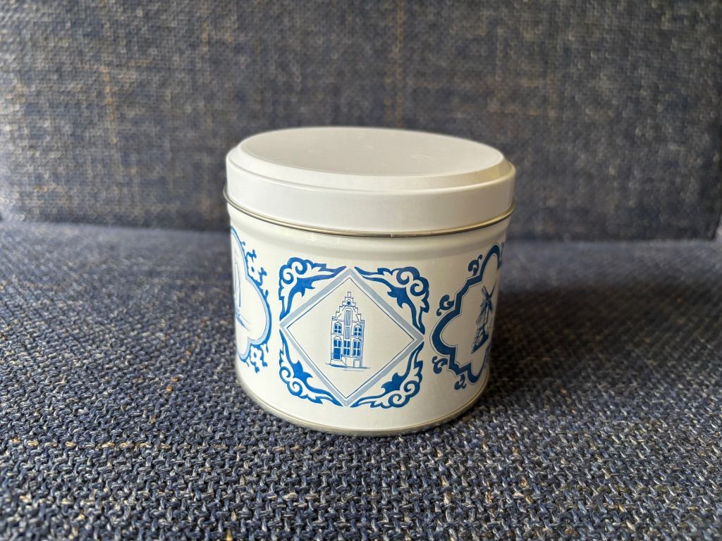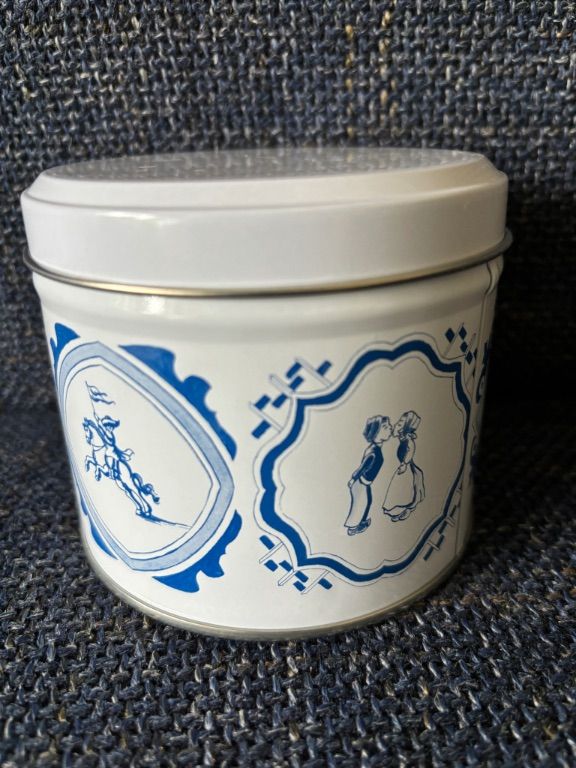 Daelmans oud Hollands blauw wit stroopwafelblik leeg koekblik