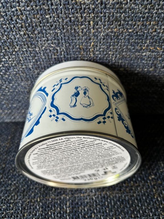 Leeg stroopwafelblik verkeert in nieuwstaat.