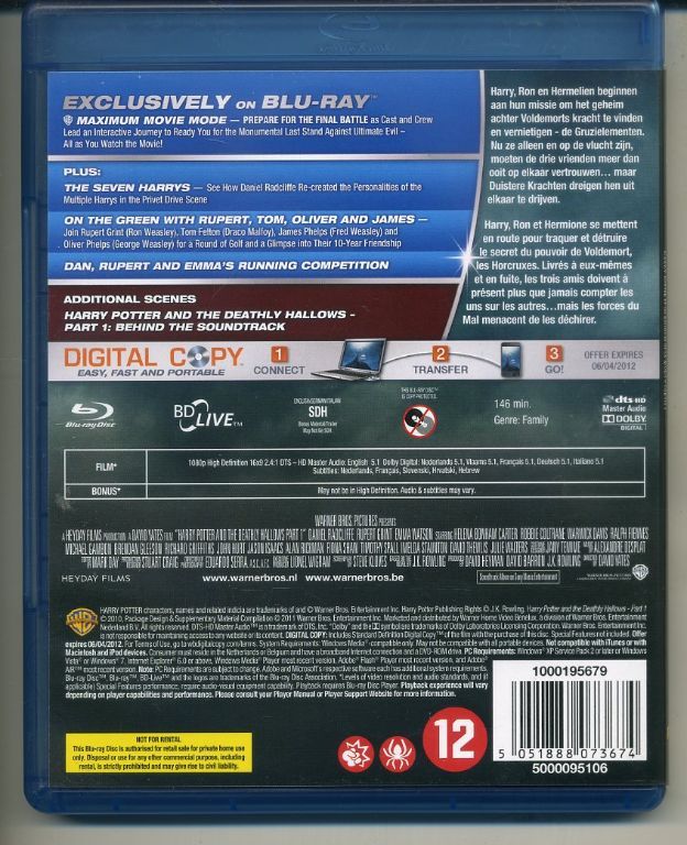 Harry Potter and the Deathly Hallows - Part 1 2 Blu-ray Disc 2010 ZGAN