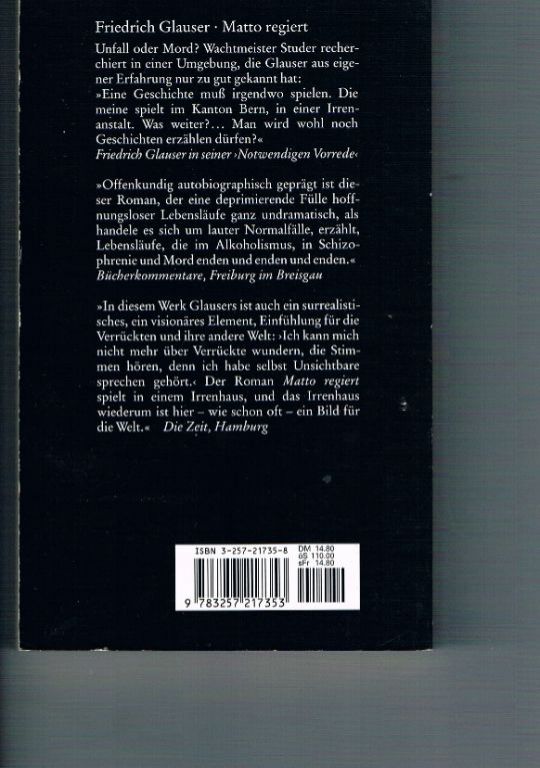 Uitg. Diogenes. 1989. Pocket. 320 pagina's. Duits. Nieuw. Ik bemerk echter een “moet” waar en paperclip heeft gezeten. Detective. Dikte 2 cm. Gewicht 275 gram. Verzendkosten vanaf € 3,95. Prijs € 2,95.