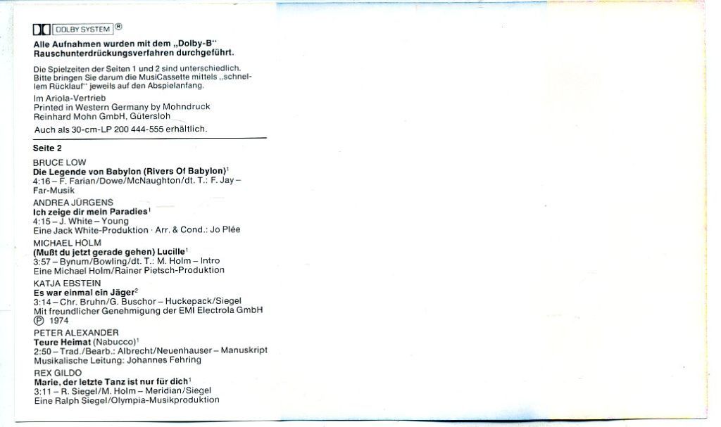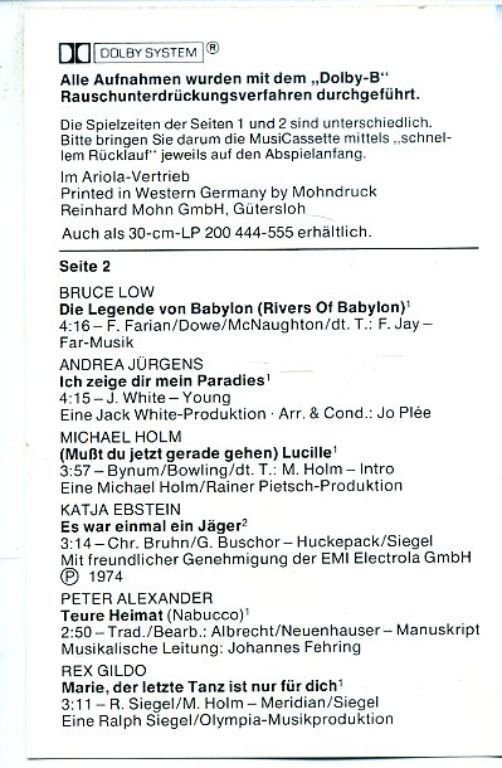 Fischer Chöre – Stargala 23 nrs cassette 1978 ZGAN Label: Polydor Cataloge: 3578 099 Opname: STEREO Format: CASSETTE Aantal nummers: 23 Uitgave jaar: 1978 Made in HOLLAND Genre: KOREN Kwaliteit: ZO GOED ALS NIEUW Seit 1 A1 ...