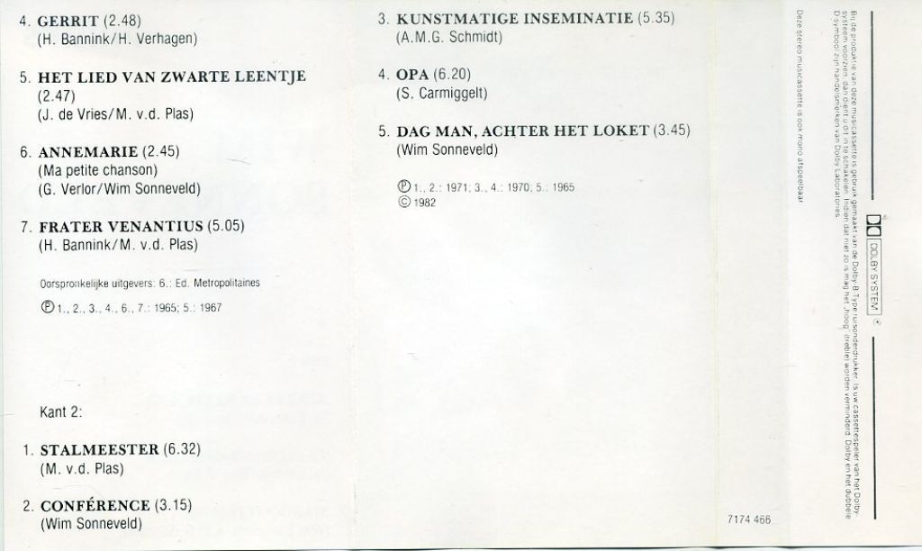 Wim Sonneveld Wim Sonneveld 12 nrs cassette 1982 18 nrs cassette ZGAN
