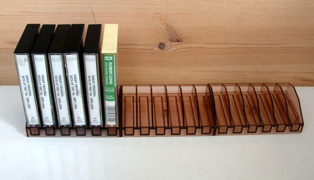 Per rekje 6 cassettes. Totaal dus plaats voor 42 cassettes. Leuk om je favoriete cassettes leuk neer te zetten.