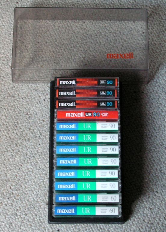 In de originele maxell cassette opbergbox zitten de volgende cassettes: