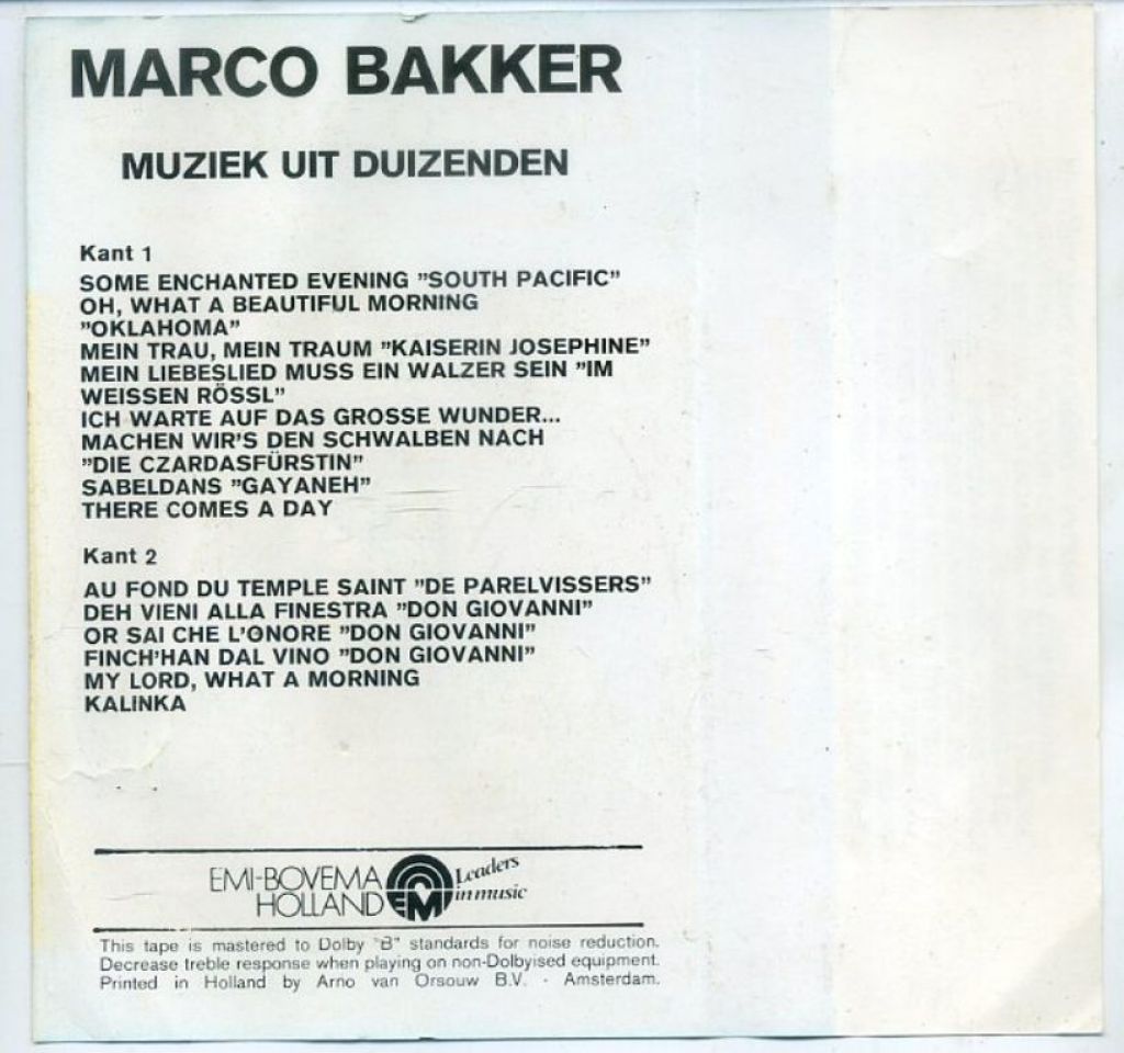 Marco Bakker Presents Muziek Uit Duizenden 12 nrs cassette 1975 ZGAN