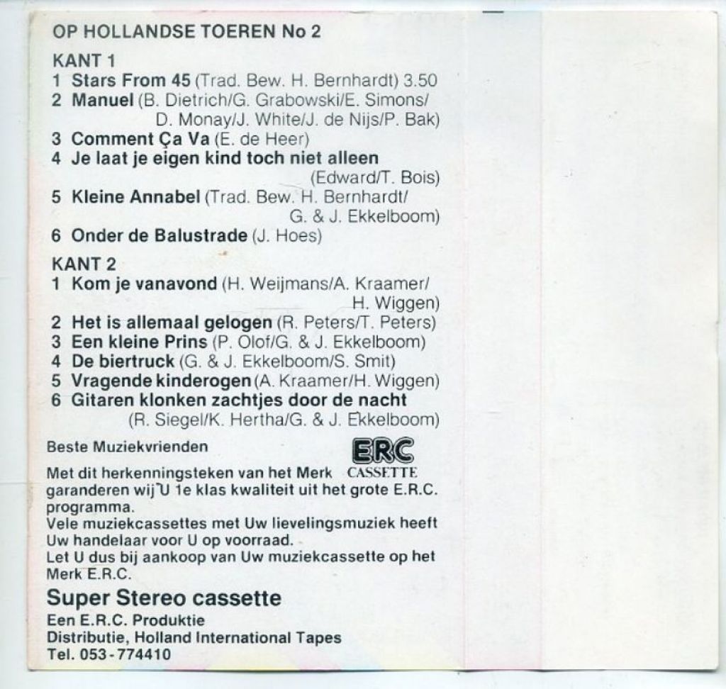 Op Hollandse Toeren No 2 12 nrs ZGAN cassette ZGAN