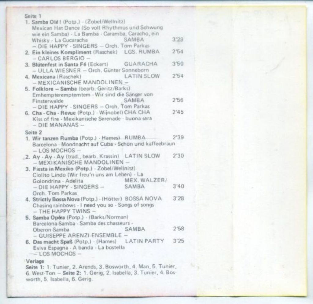 Die Happy-Singers - Orch. Tom Parkas Samba Olé!