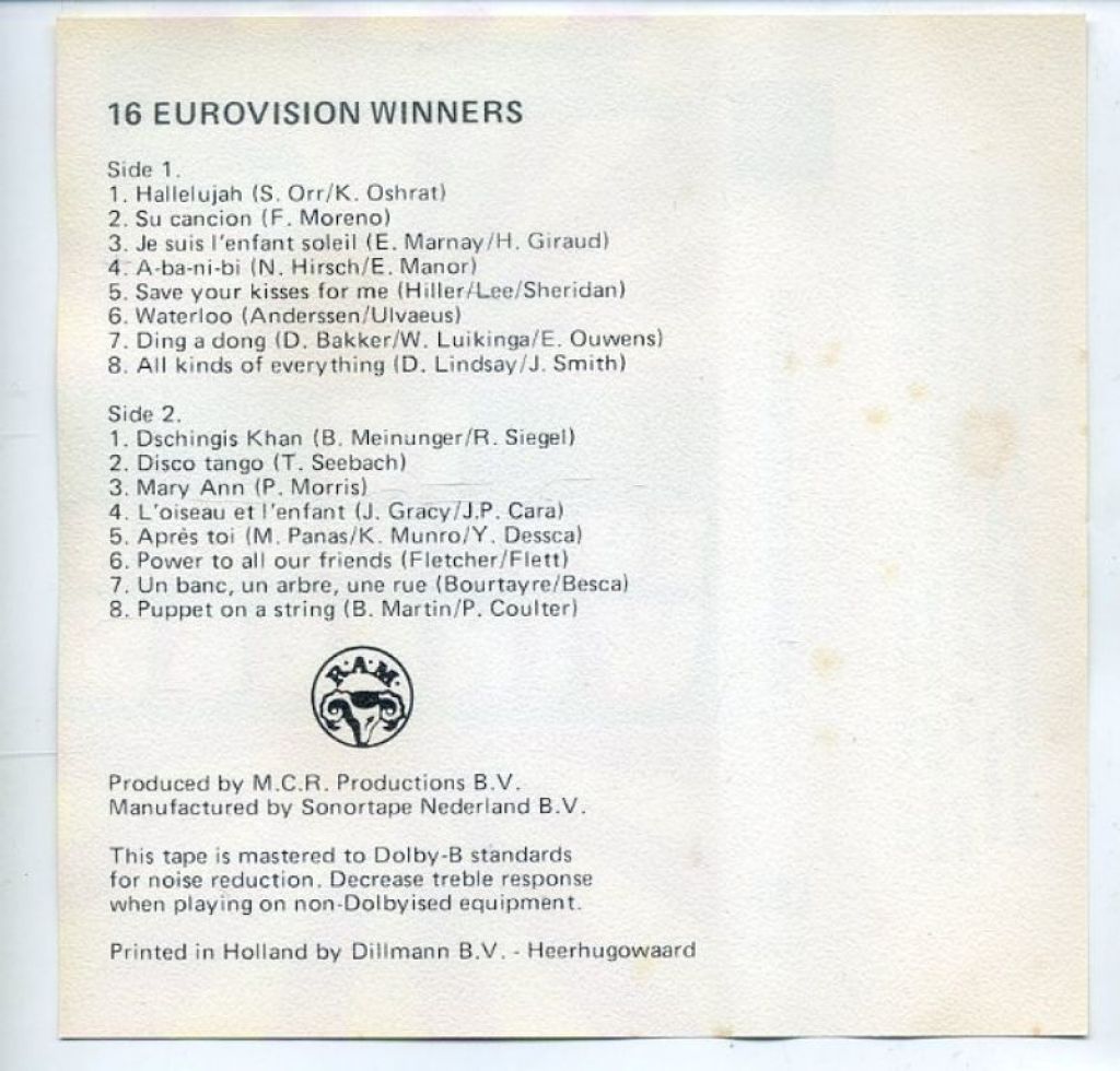 16 Eurovision Winners cassette ZGAN