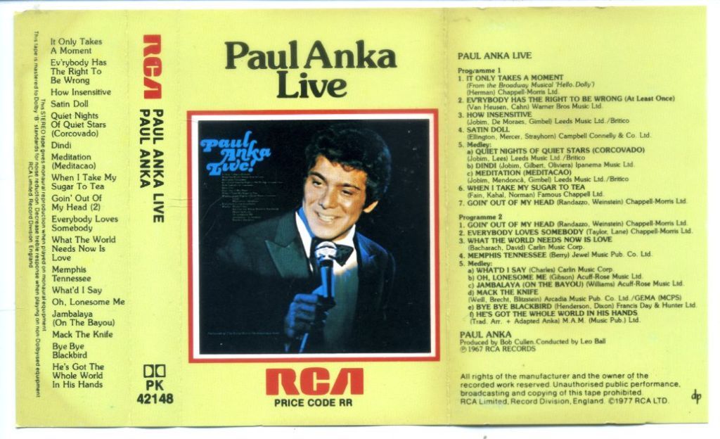 2) Paul Anka – Paul Anka Live 12 nrs cassette 1977 ZGAN