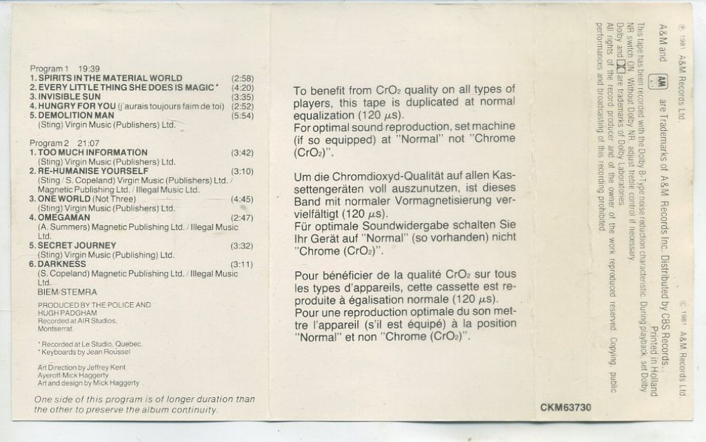 The Police – Ghost In The Machine 11 nrs cassette 1981 ZGAN
