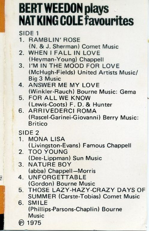 Bert Weedon Plays Nat King Cole Favourites cassette 1975 ZGAN