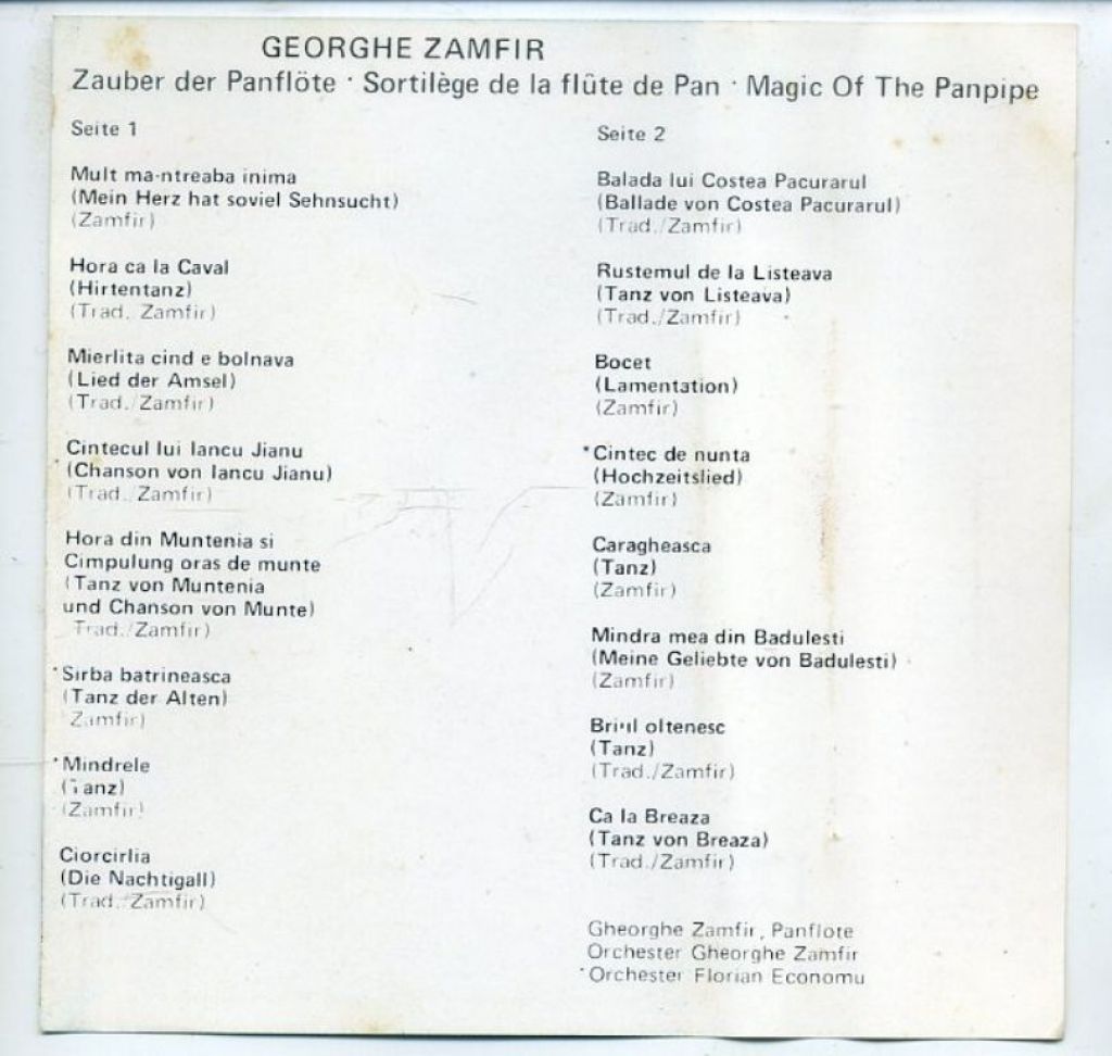 Gheorghe Zamfir – Zauber Der Panflöte 16 nrs cassette ZGAN