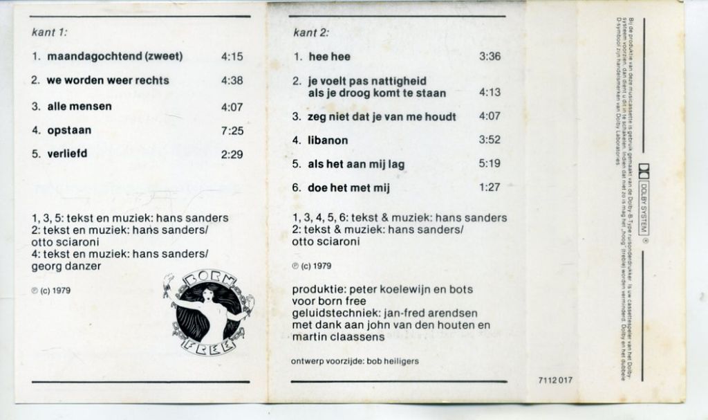 Bots – Je Voelt Pas Nattigheid Als Je Droog Komt Te Staan 11 nrs cassette 1979 ZGAN