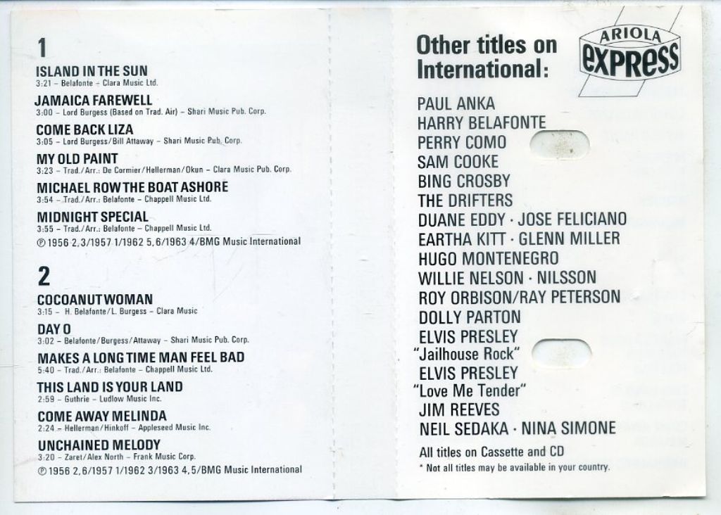 Harry Belafonte – Harry Belafonte 12 nrs cassette 1989 ZGAN