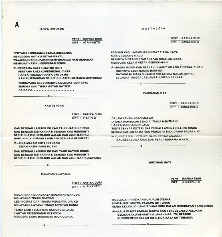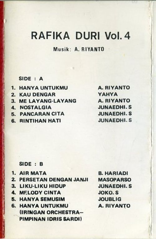 Rafika Duri Vol. 4 Hanya Untukmu cassette 12 nrs cassette 1978