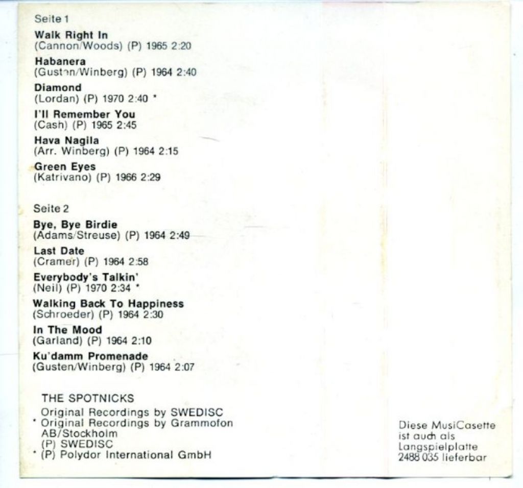 The Spotnicks Pop Giants, Vol. 8 cassette 12 nrs ZGAN