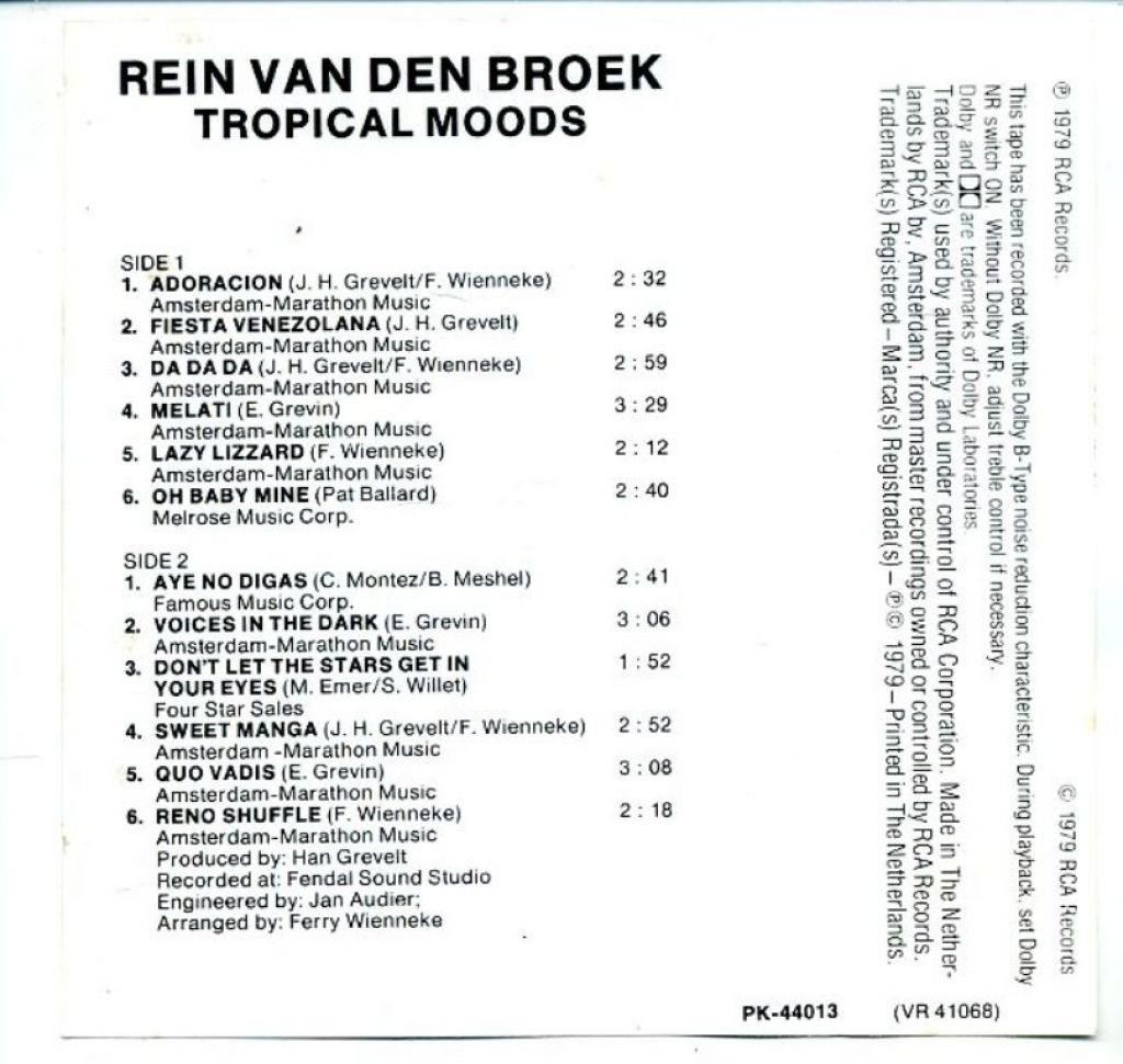 Rein van den Broek Tropical Moods 12 nrs cassette 1979 ZGAN